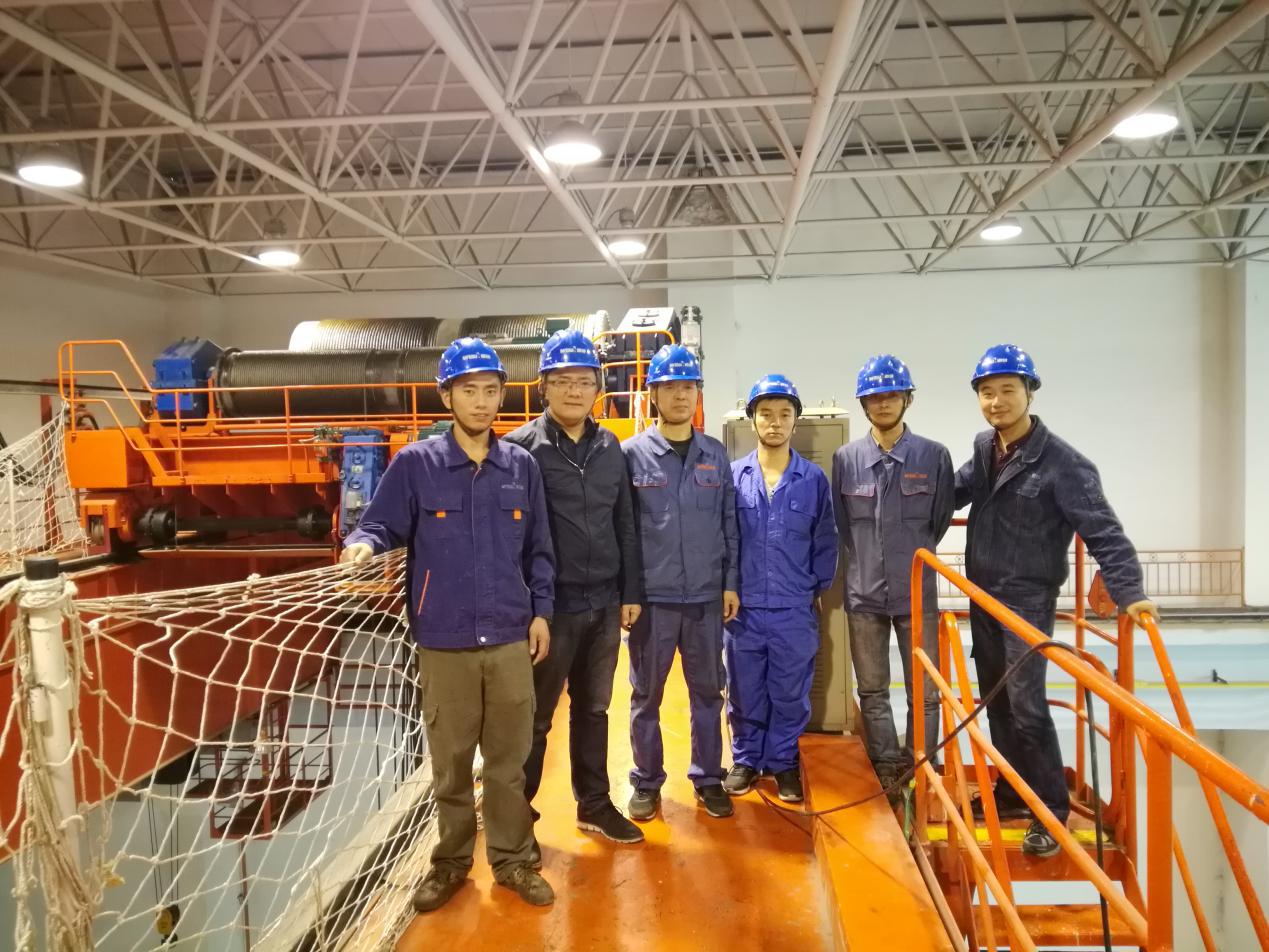 項(xiàng)目組成員在小峽水電站廠房1號(hào)橋機(jī)上合影