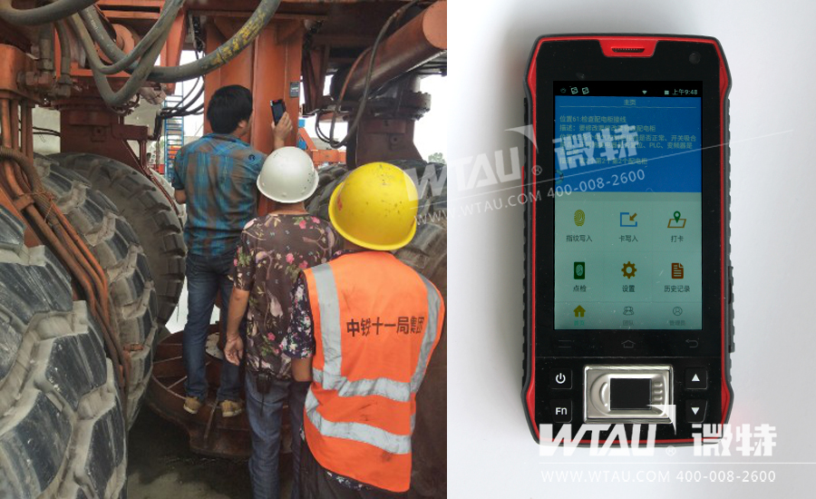 圖為微特售后服務(wù)工程師現(xiàn)場指導(dǎo)使用PDA點檢系統(tǒng)