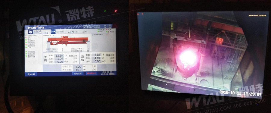 圖為配備微特安全監(jiān)控管理系統(tǒng)的冶金起重機