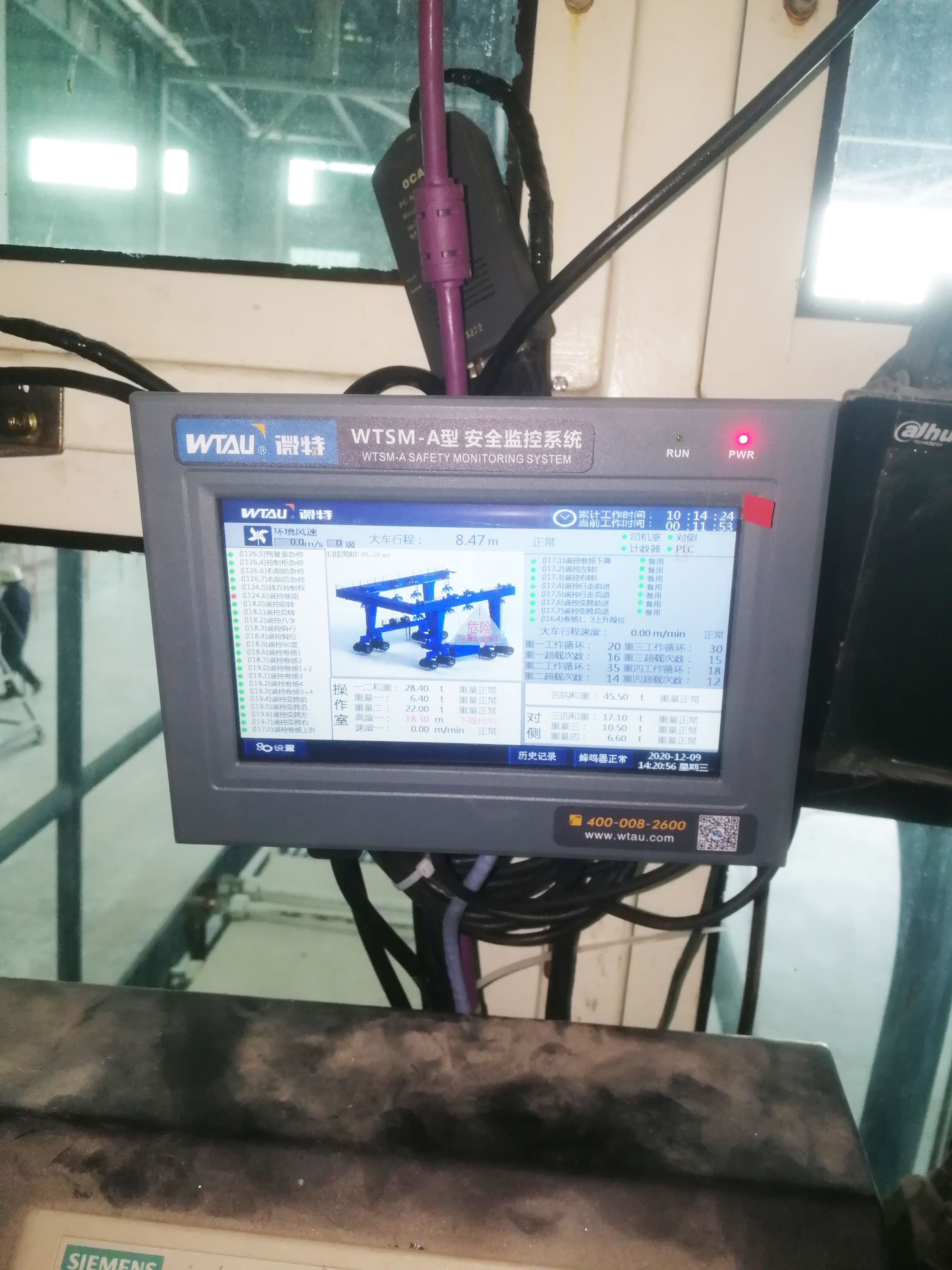 此次微特為太陽鳥游艇制造公司安裝的WTSM-A安全監(jiān)控系統(tǒng),可實時監(jiān)視起重機(jī)的吊鉤高度、重量,大車行程等數(shù)據(jù),亦可實時記錄和顯示起重機(jī)的操作指令限位等數(shù)據(jù)。
