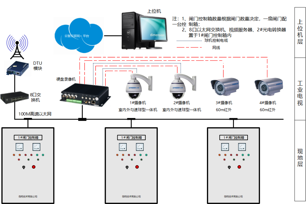 微特承接小云峰水電站此次改造的大壩溢流壩部分共7孔閘門,閘門為平板門,單孔凈寬18.5米,各閘門并沒有配置遠程控制系統(tǒng),閘門控制室距離當?shù)刂蛋嗍逸^遠,對閘門的監(jiān)視及控制極為不便。