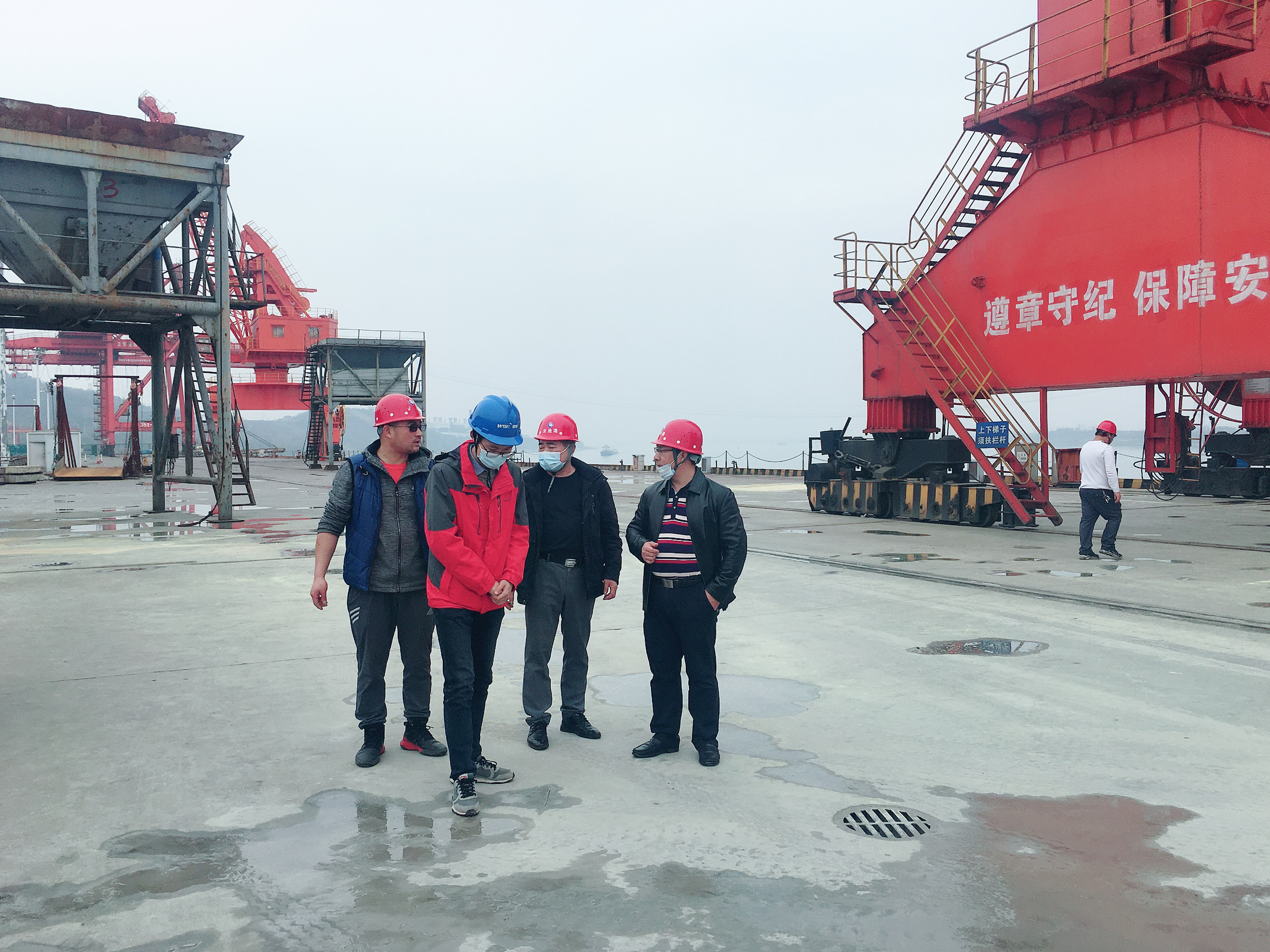 微特與考察團(tuán)在碼頭實(shí)地考察