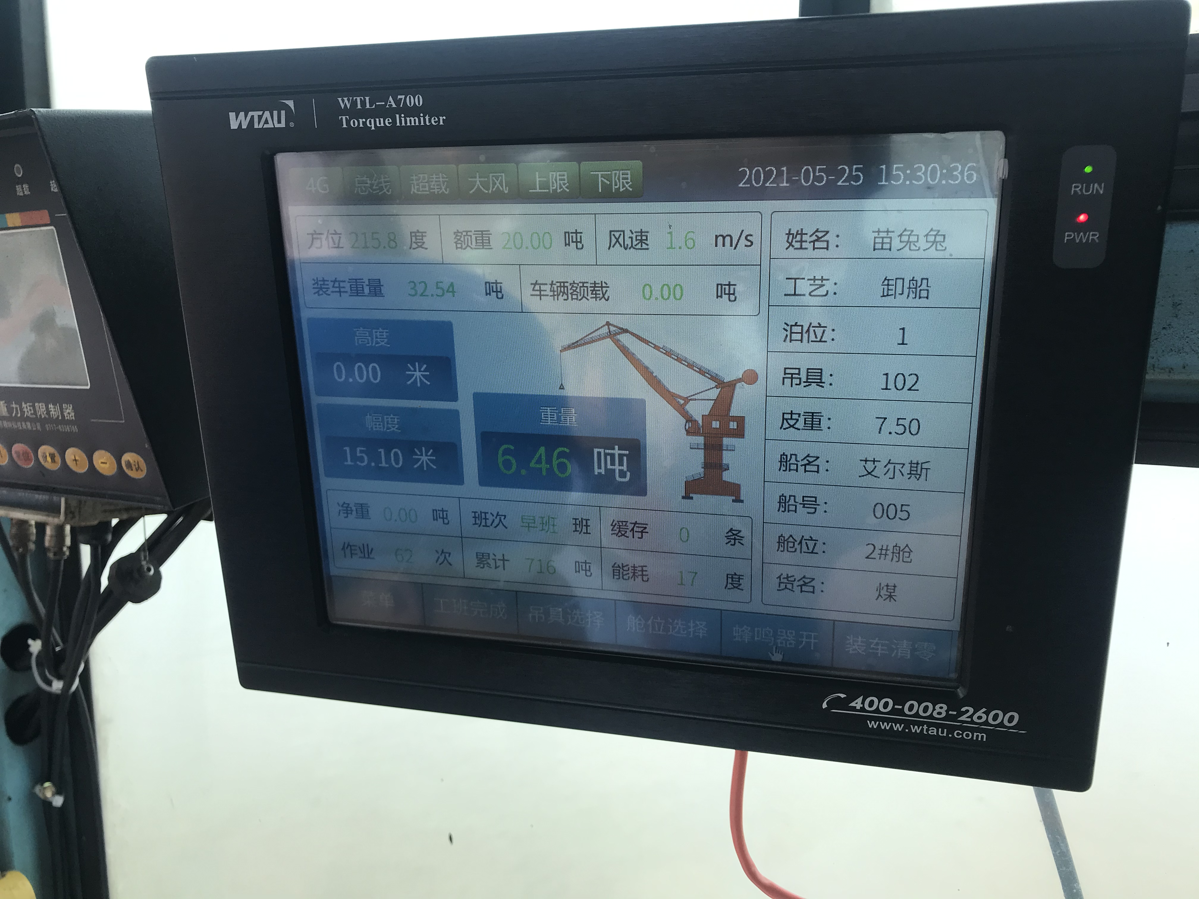 此次項(xiàng)目所使用的WTZ/L系列動(dòng)態(tài)稱重系統(tǒng),包括動(dòng)態(tài)稱重、能耗計(jì)量、無線傳輸系統(tǒng)與遠(yuǎn)程平臺(tái)集控系統(tǒng)等組成。系統(tǒng)將采集的信息進(jìn)行機(jī)上集中管理、監(jiān)控、處理、分析并能夠通過局域無線通訊設(shè)備或者移動(dòng)無線通訊設(shè)備將稱重?cái)?shù)據(jù)傳輸?shù)睫k公電腦上,實(shí)現(xiàn)對(duì)港口裝卸作業(yè)情況、設(shè)備運(yùn)行情況、港口作耗能情況等參數(shù)的實(shí)時(shí)監(jiān)測,提高港口裝卸作業(yè)和設(shè)備管理自動(dòng)化水平。該系統(tǒng)不僅僅能滿足起重機(jī)的載荷安全保護(hù),還提升了吊載精度,最大限度的發(fā)揮出單鉤的工作效率,還能通過工班、船舶、設(shè)備、時(shí)間對(duì)工作量進(jìn)行記錄、統(tǒng)計(jì)、報(bào)表,加快了信息化管理進(jìn)程。