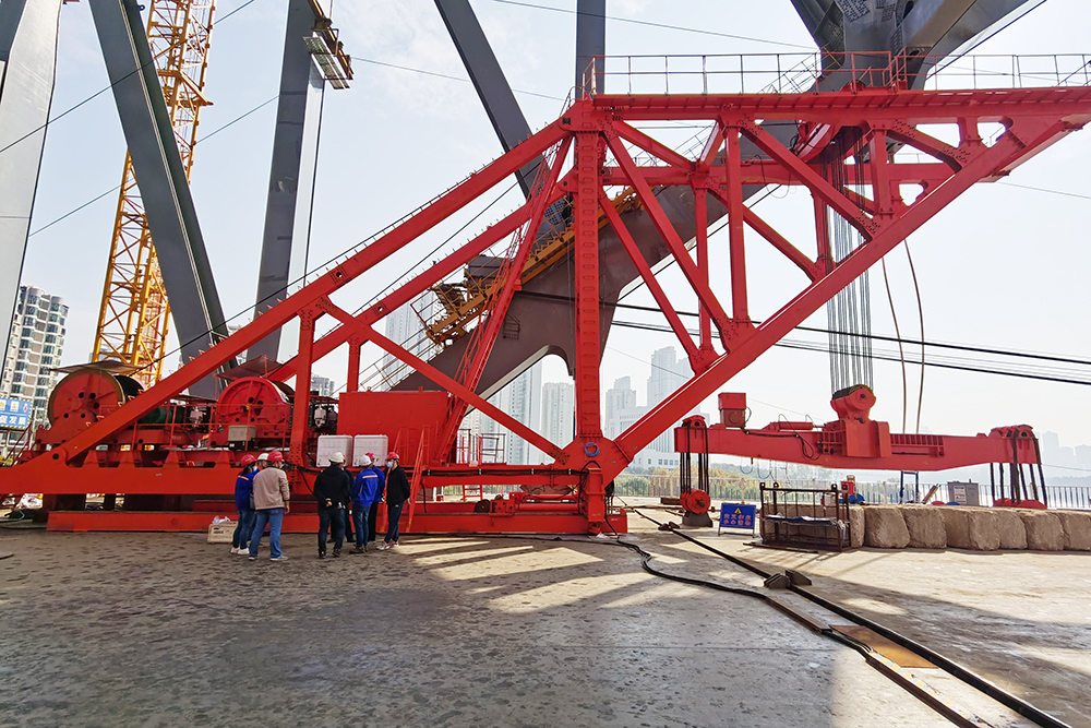 施工現場機器轟鳴,江漢七橋正在進行上部結構鋼梁安裝,有的在焊接,有的在吊裝桿件,工序有序穿插,而微特本次主要給架梁起重機加裝安全監(jiān)控管理系統(tǒng),完成該架梁起重機安全監(jiān)控管理系統(tǒng)的設計、現場安裝、調試及后續(xù)使用服務。