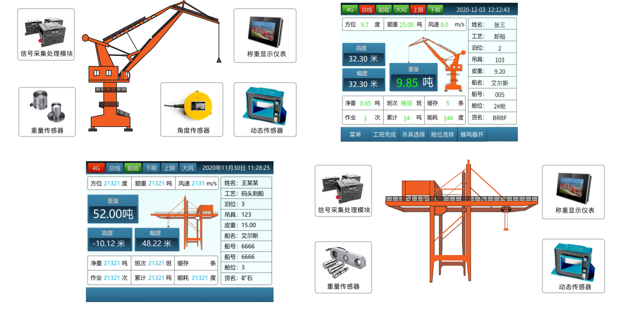 WTZ/L-A700型碼頭門(mén)座機(jī)卸船機(jī)動(dòng)態(tài)稱(chēng)重管理系統(tǒng)不僅僅能滿(mǎn)足起重機(jī)的載荷安全保護(hù),還提升了吊載精度,最大限度的發(fā)揮出單 鉤的工作效率,還能按工班、船舶、設(shè)備、時(shí)間對(duì)工作量進(jìn)行記錄、統(tǒng)計(jì)、報(bào)表,加快了信息化管理進(jìn)程。