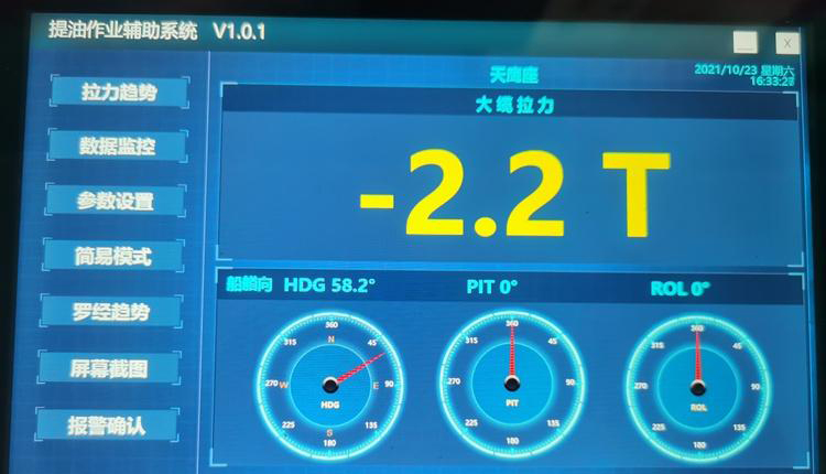 完工后微特工程師準備乘直升飛機返回陸地,現場負責人送別時還在向微特工程師道謝并反饋道:大攬拉力安全監(jiān)控系統(tǒng)界面顯示清晰明了,各項參數顯示一目了然。你們這套系統(tǒng)能夠實時監(jiān)控大攬的拉力和船艏向,及時的向我們工作人員預警或報警,讓我們在原油外輸作業(yè)時心里更有底了。