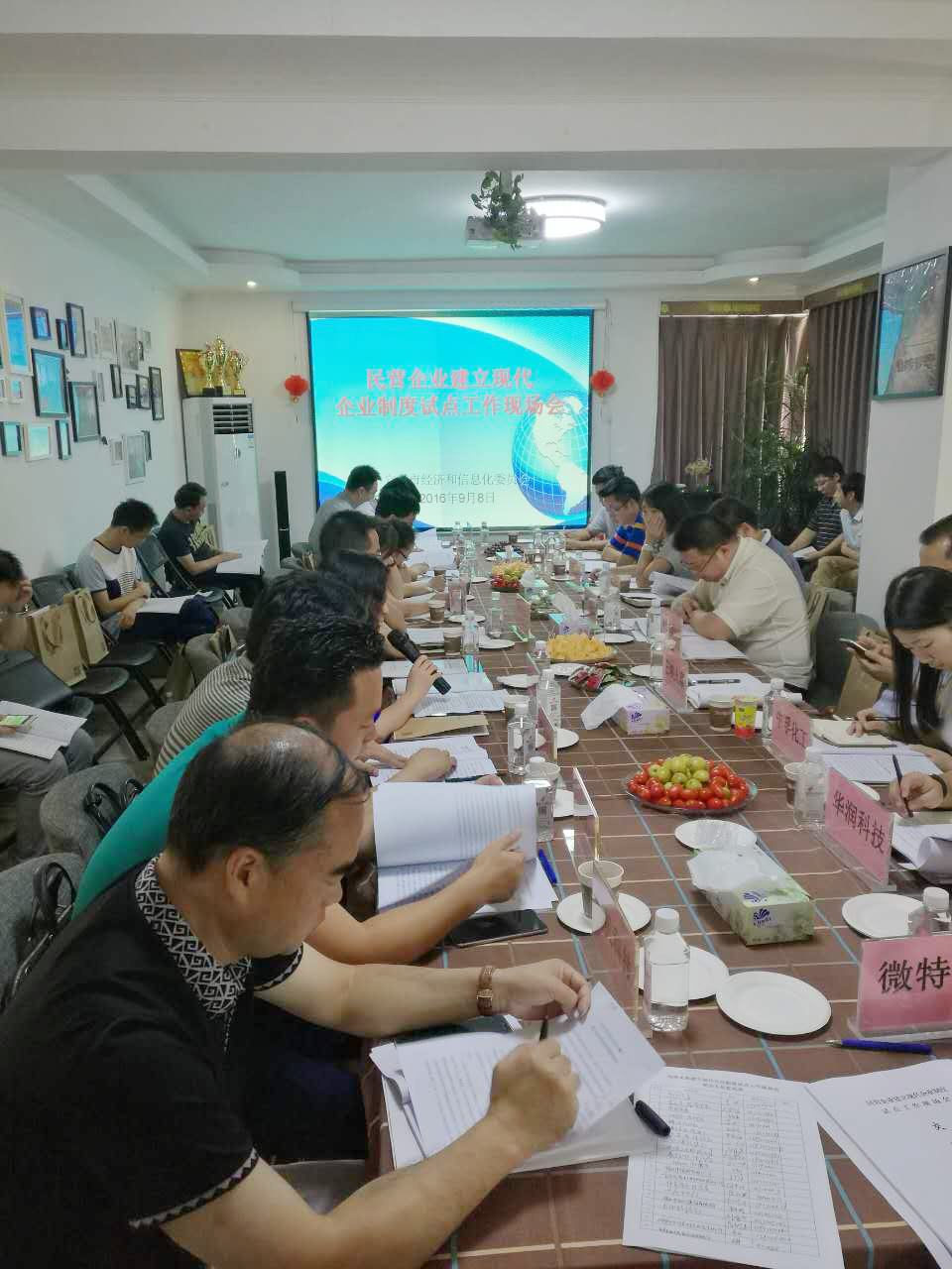 9月8日上午,宜昌市經(jīng)信委組織民營企業(yè)建立現(xiàn)代企業(yè)制度試點工作現(xiàn)場會在微特智慧谷智庫咖啡會議室召開。