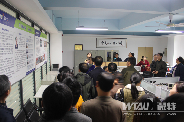 微特公司技術(shù)總監(jiān)高鈺敏、工會(huì)主席王俐向朱主任一行匯報(bào)了勞模創(chuàng)新工作室的建設(shè)情況,取得的科技成果和人才培養(yǎng)成果。朱主任一行詳細(xì)調(diào)研了設(shè)計(jì)工作室、實(shí)驗(yàn)室、眾創(chuàng)工坊和產(chǎn)品展示廳。當(dāng)聽(tīng)到高鈺敏勞模創(chuàng)新工作室一年創(chuàng)造了60多項(xiàng)專(zhuān)利成果,并培養(yǎng)出1名省五一勞動(dòng)獎(jiǎng)?wù)芦@得者、1名市勞動(dòng)模范、1名“高新工匠”時(shí),朱主任表達(dá)了贊賞和肯定。