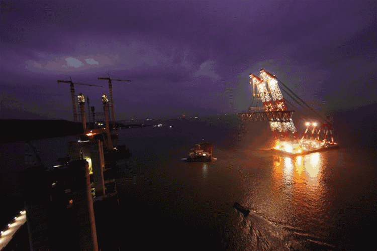 1月22日16時(shí)28分,安裝有微特電子超大型起重船起重安全監(jiān)控系統(tǒng)的“巨無(wú)霸”——大橋海鷗號(hào)起重船將吊重3400噸的鋼桁梁穩(wěn)穩(wěn)架設(shè)到墩頂,由中鐵大橋院設(shè)計(jì)、中鐵大橋局承建的平潭海峽公鐵兩用大橋完成了最重鋼桁梁的架設(shè),標(biāo)志著世界橋梁整孔鋼桁梁架設(shè)的最重紀(jì)錄被打破。