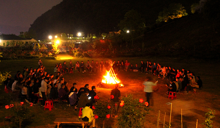 晚上大家圍起篝火,精彩的節(jié)目上演,才藝不斷,歡樂此起彼伏。