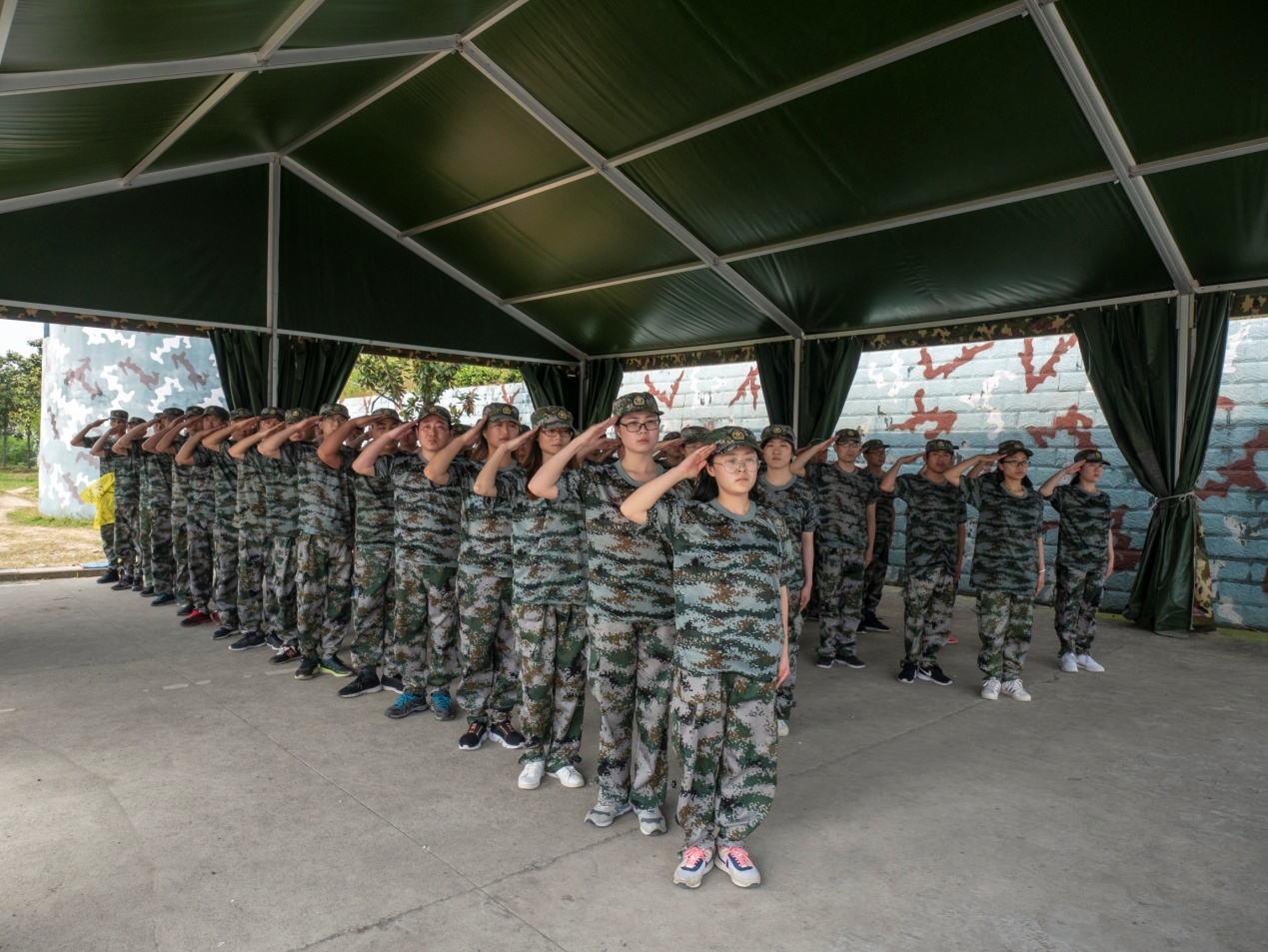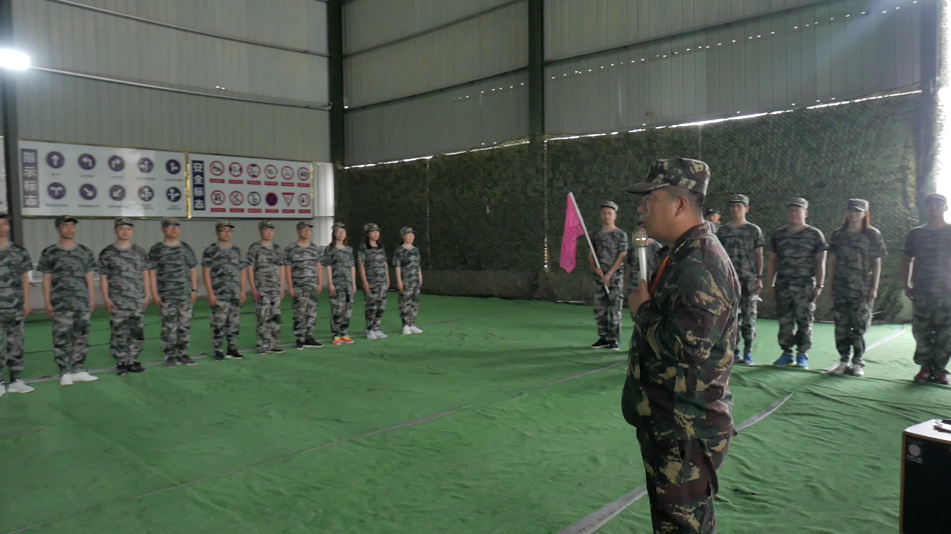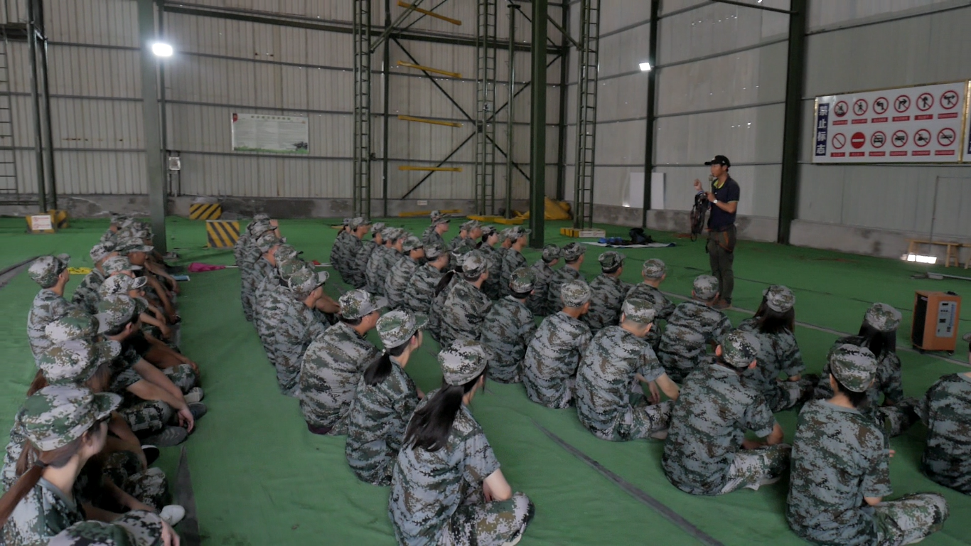 10分鐘極速換裝后,教官進行活動紀律說明,快速將隊員們調(diào)整為軍事訓練狀態(tài)。