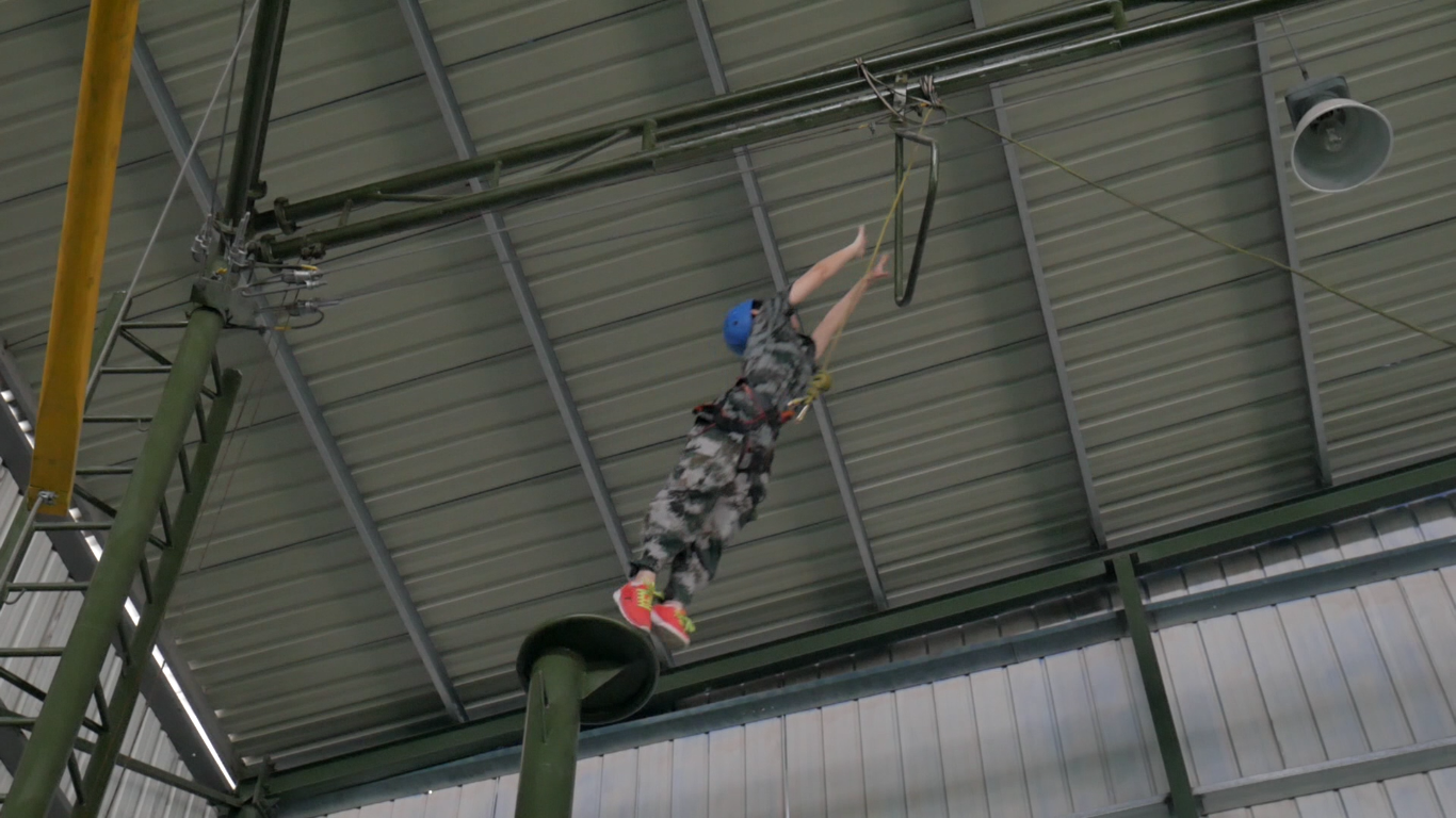 完成相關軍訓科目的操練后,全體迅速轉(zhuǎn)場,進入高空抓杠和一線生機項目。想要完成,個人和團隊必須都有所突破。