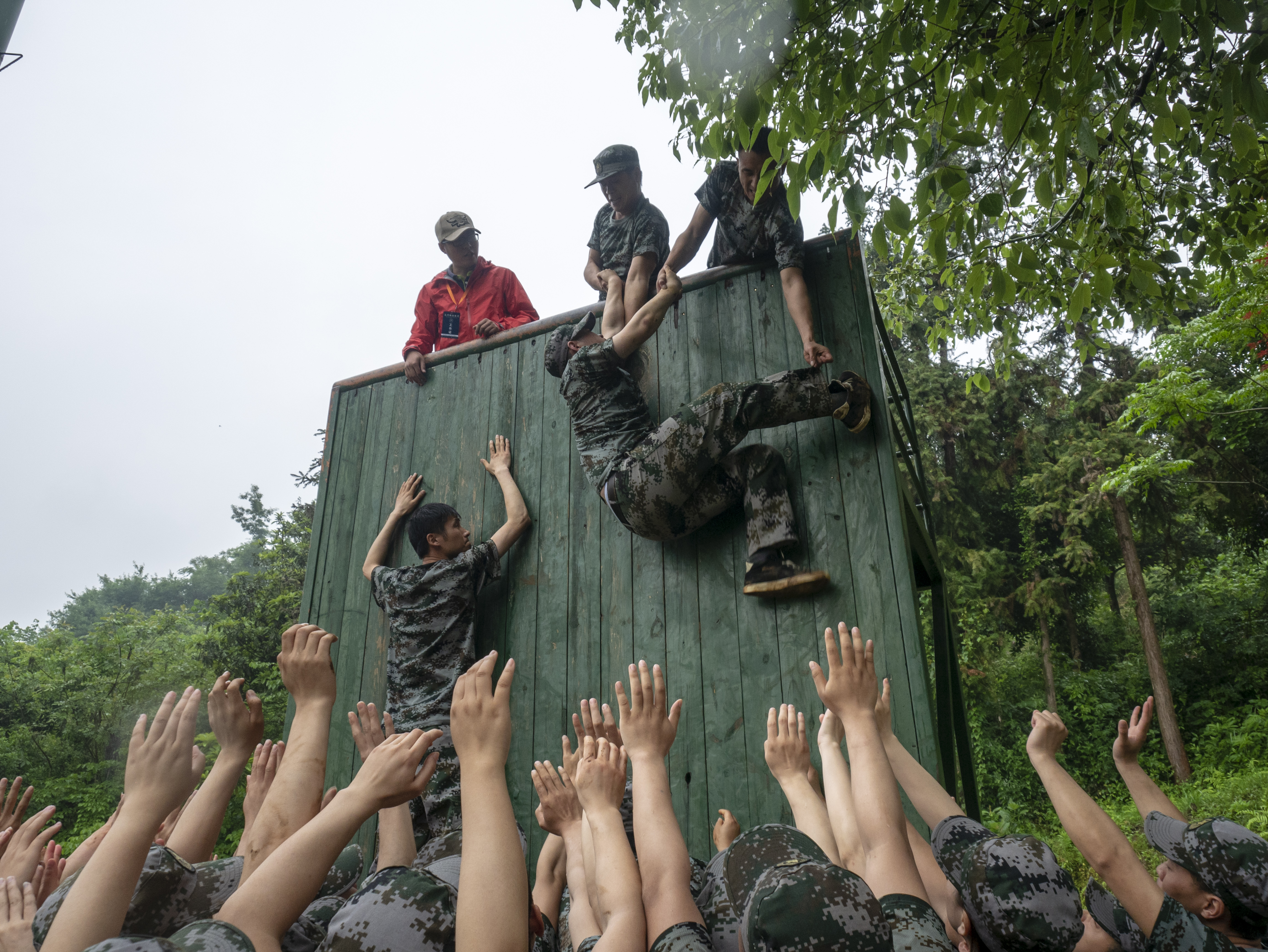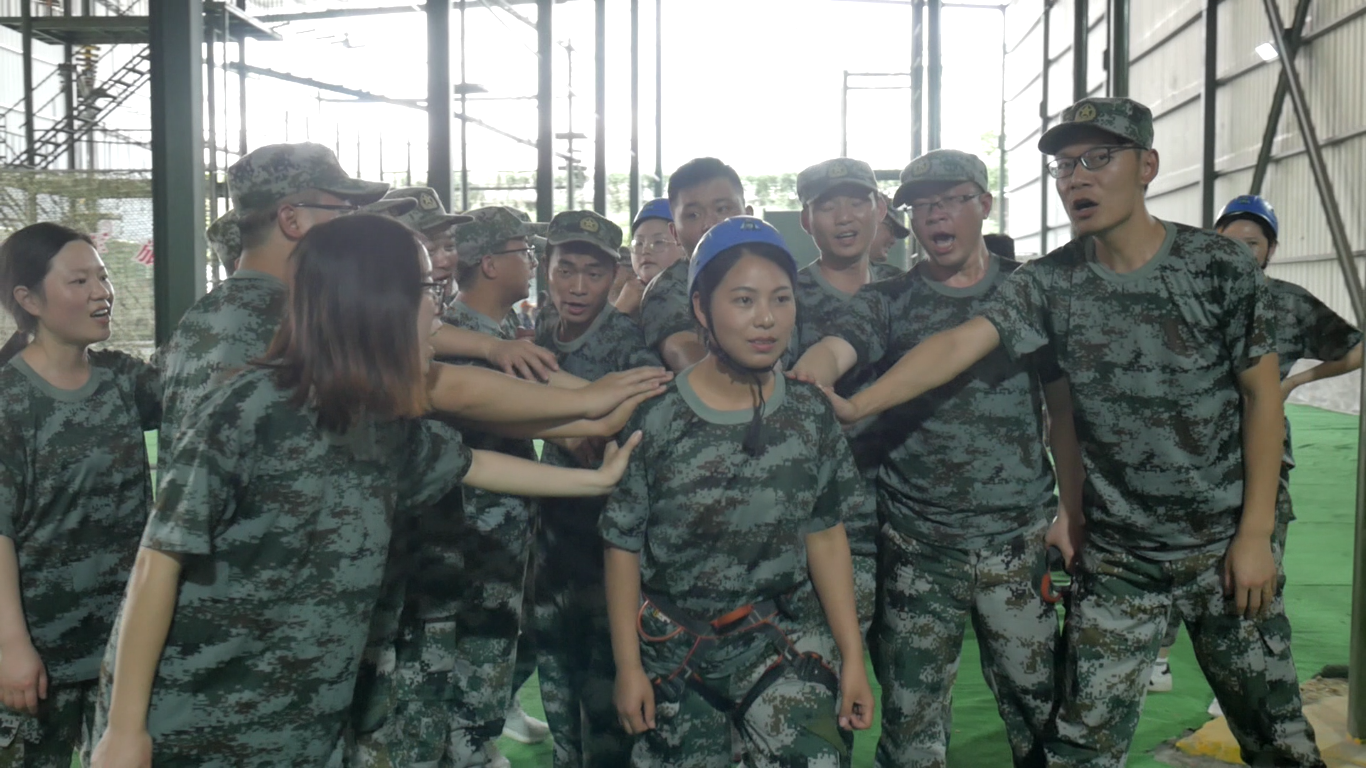 完成匯報演練后,教官要求將隊長舉過頭頂并堅持10分鐘。在熱情高漲的氛圍下,四個小隊輕松完成了此次任務。在共同努力,共同承擔之后,小隊完全融合,他們擁有著空前的凝聚力去戰(zhàn)勝并完成接下來的一個個任務。