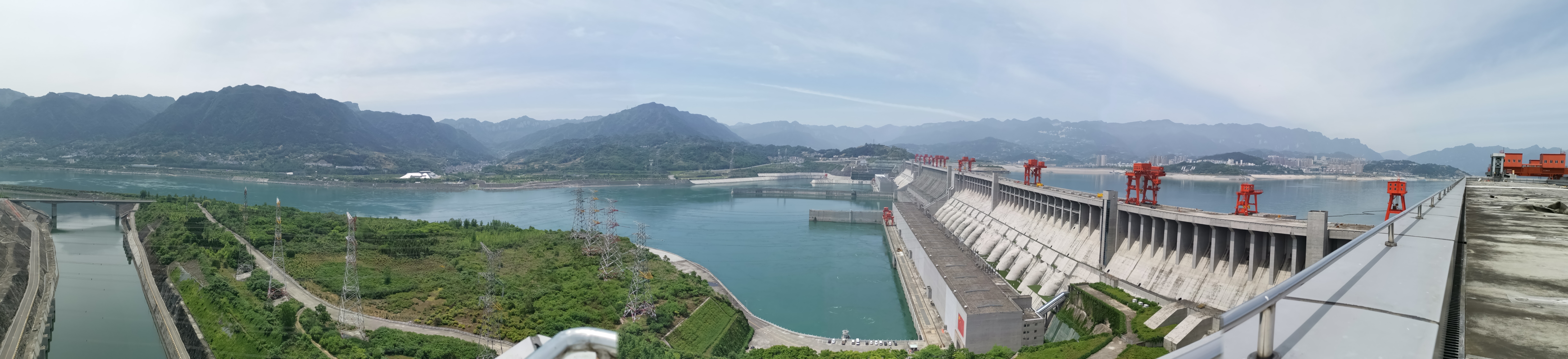 ▲三峽升船機上眺望三峽大壩