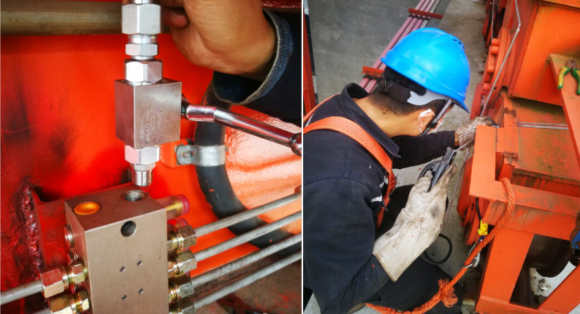▲滑潤系統(tǒng)管路對接及滑潤系統(tǒng)測試