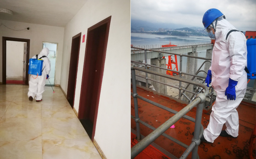 ▲施工前對生活營地和施工現(xiàn)場設(shè)備進行消毒