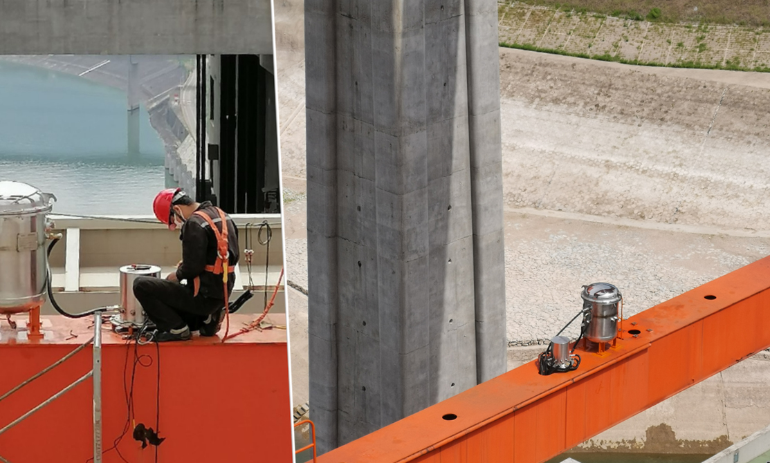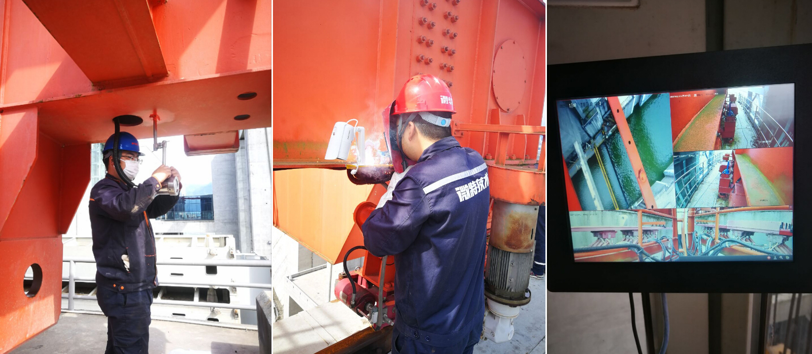 ▲微特技術(shù)人員配合三峽通航管局領(lǐng)導(dǎo)檢查現(xiàn)場施工情況