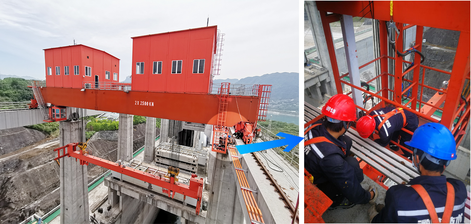 現(xiàn)場復(fù)工后,微特技術(shù)項目組正式投入井然有序的施工中,本項目施工主要包括上閘首500T橋機和300T橋機、下閘首160T橋機電纜卷筒控制方式、抓梁穿、退銷應(yīng)急回路、應(yīng)急泵站一體化改造、增加視頻圖像監(jiān)控、橋機潤滑系統(tǒng)改造、橋機滑觸線更換、軌道檢測等。