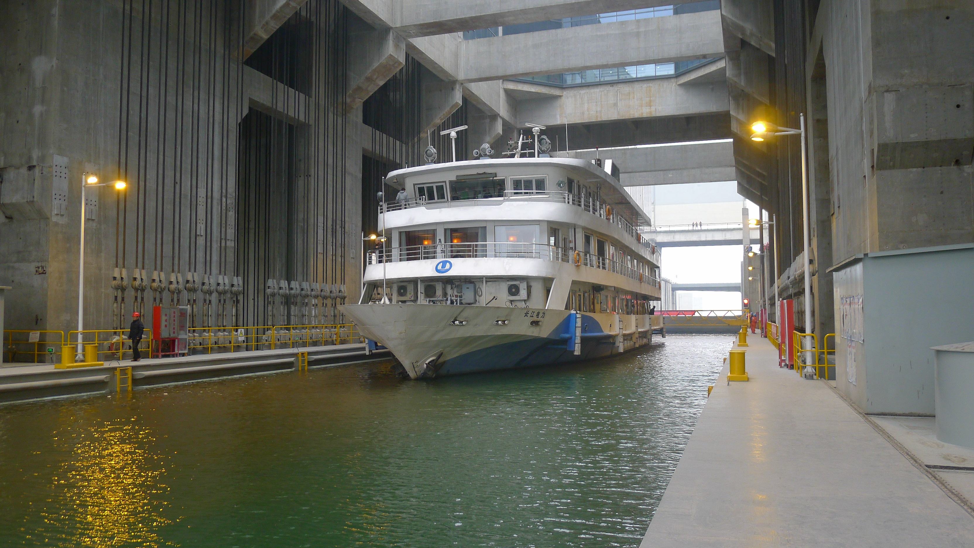 船舶如果要順暢往返于上下游,就必須通過三峽樞紐工程的雙線五級梯級船閘或垂直升船機。