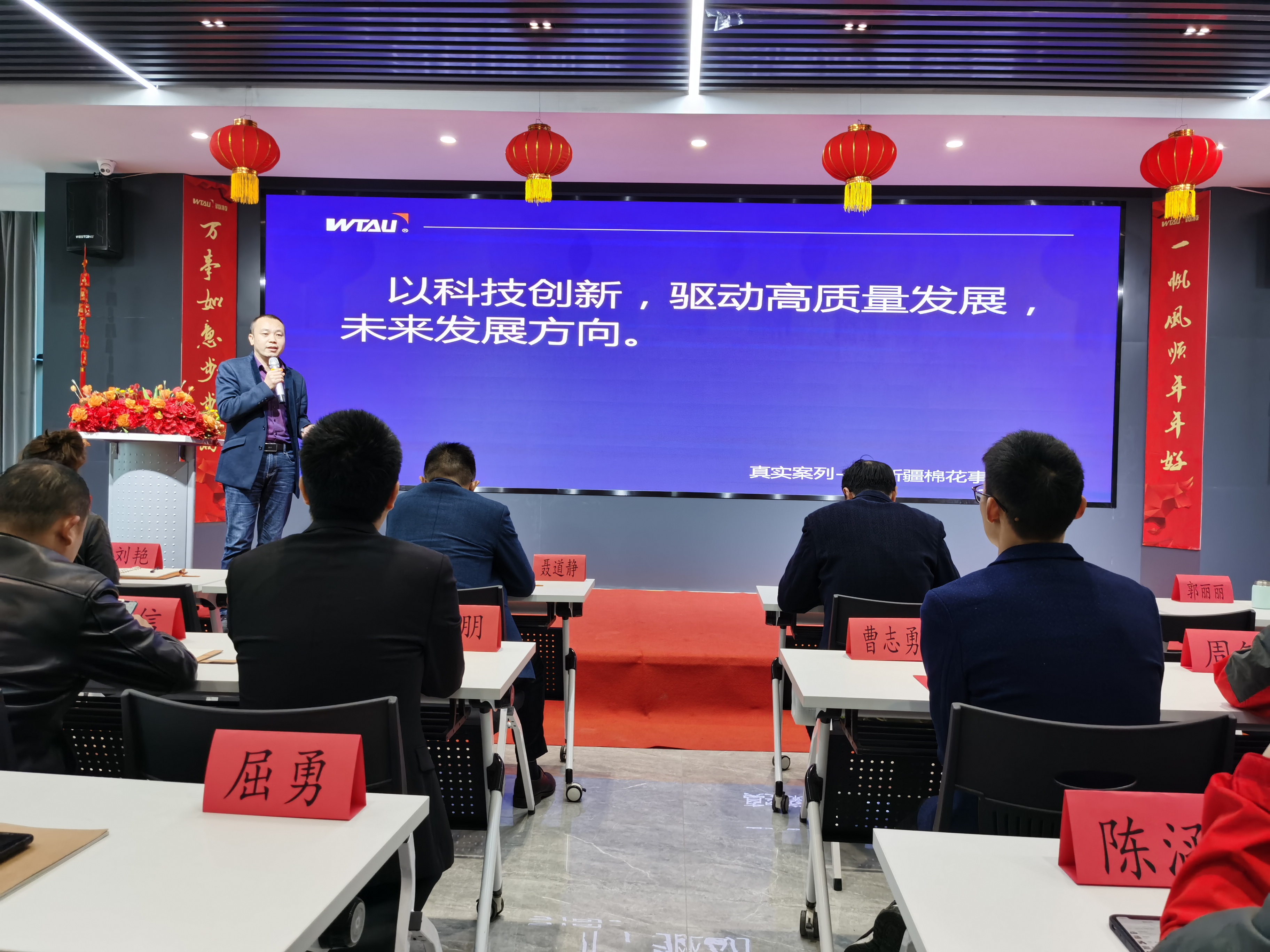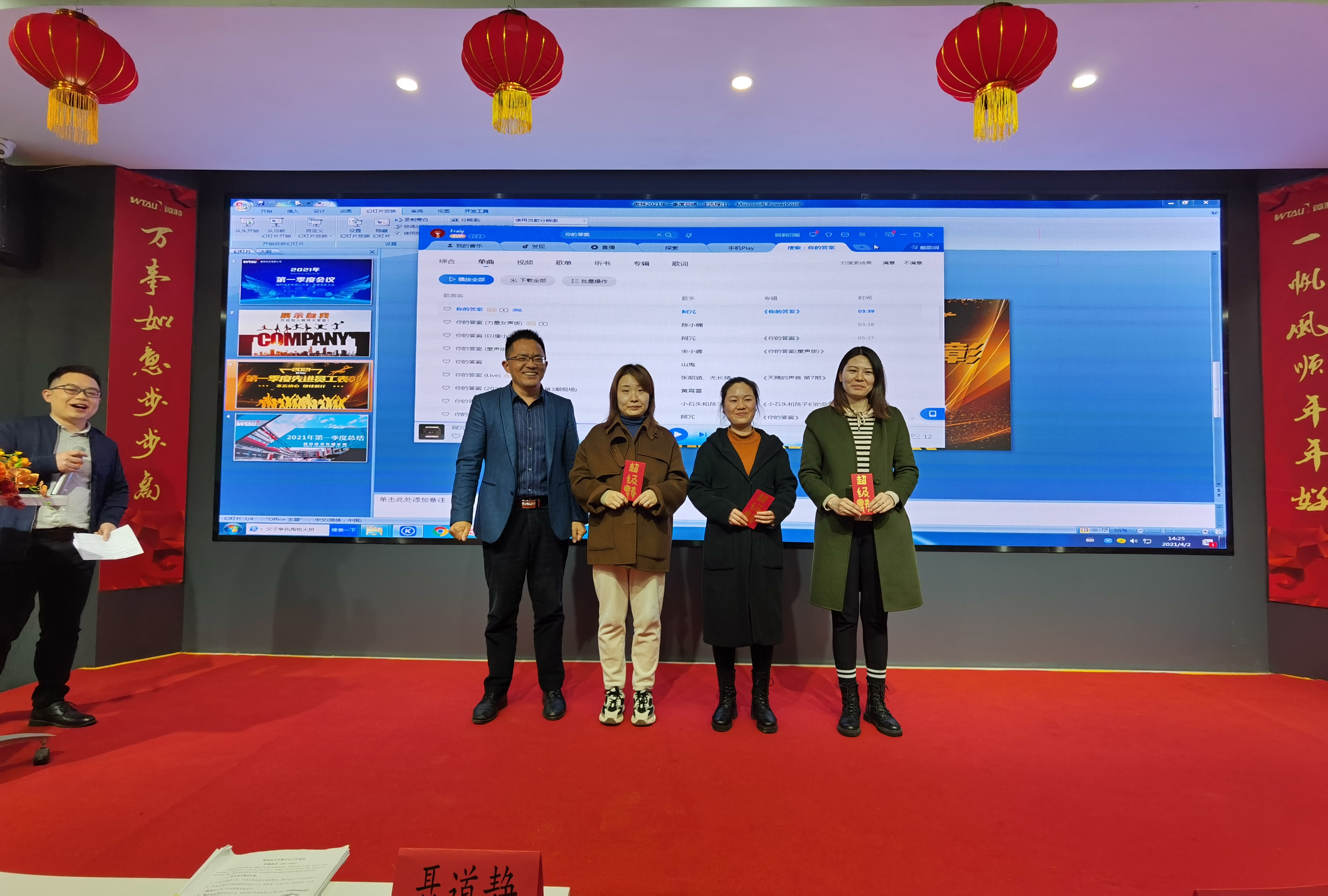第一季度共有26位新員工加入微特大家庭,會議上邀請了在第一季度中加入微特的新同事進行了自我介紹,出差在外不在會議現(xiàn)場的新同事也通過視頻讓大家認識自己。