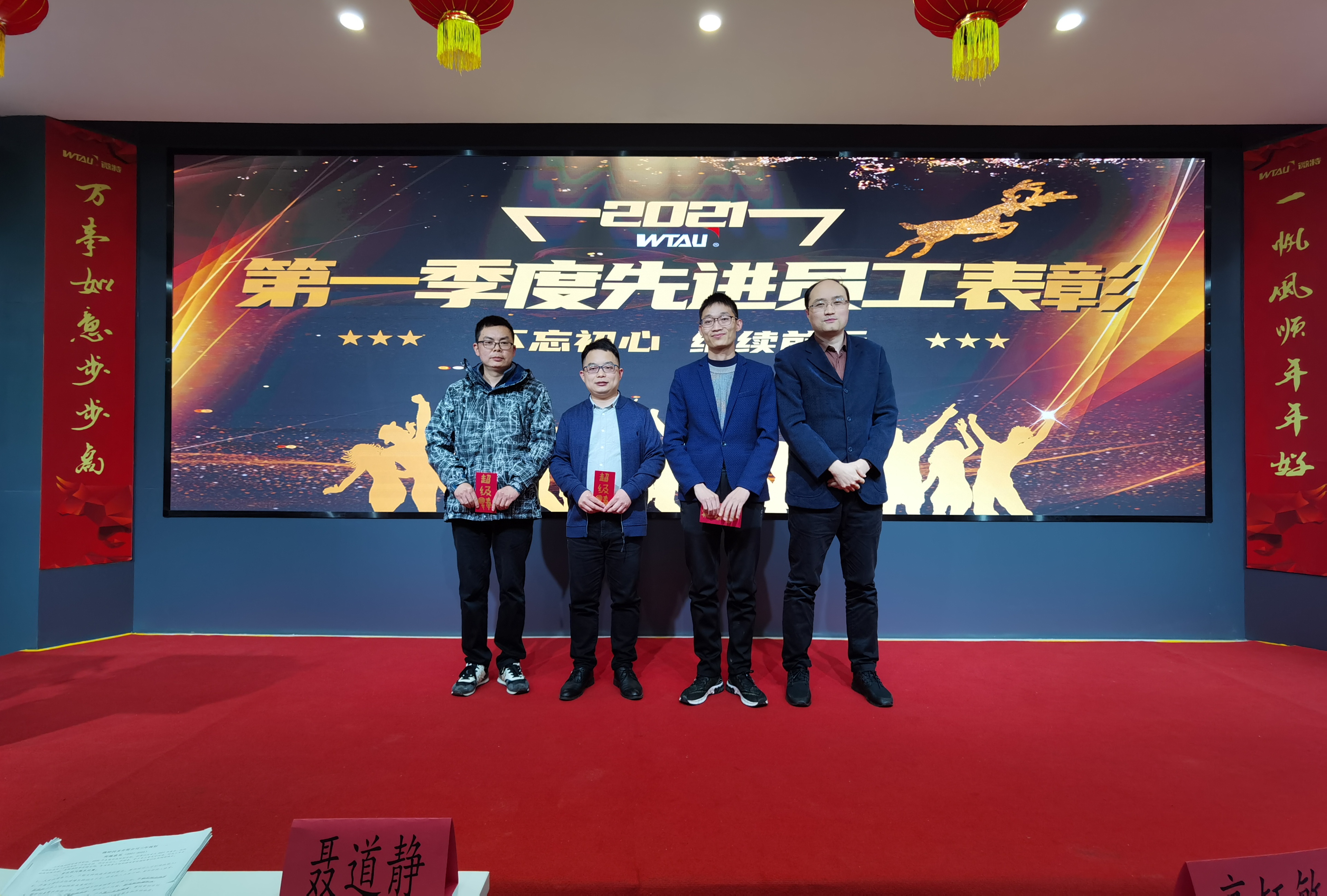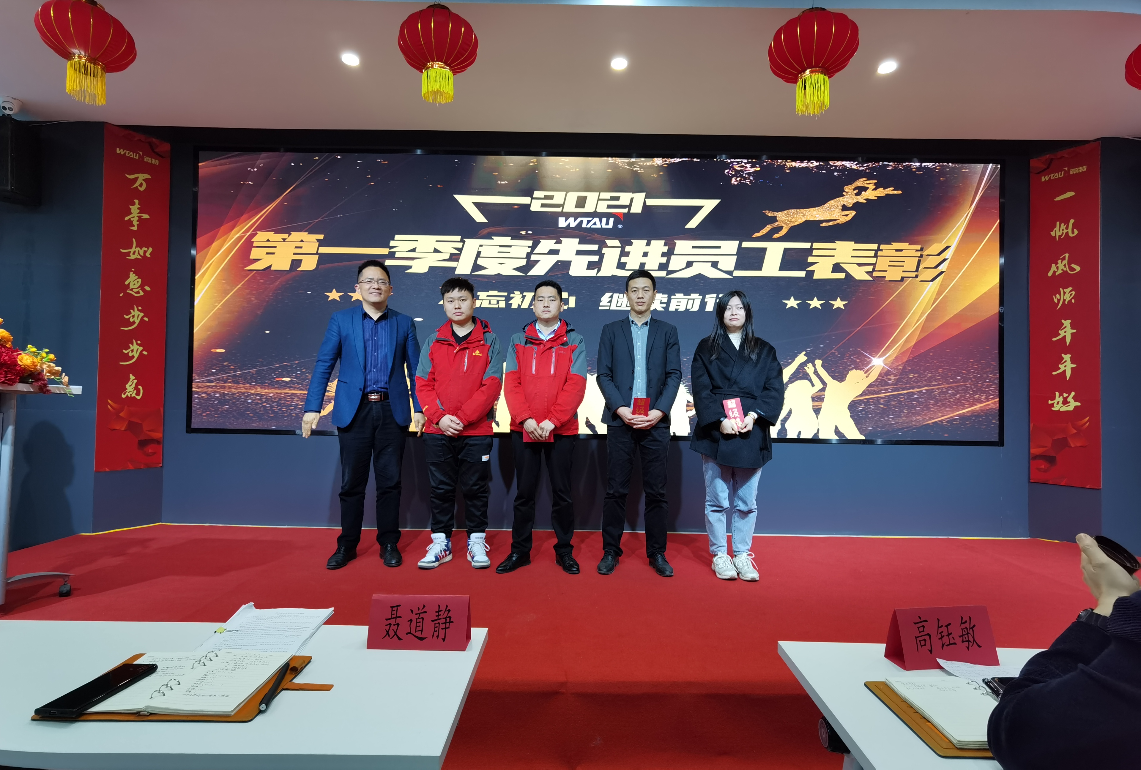 榮譽來自奮斗,成功源于拼搏!微特對2021年第一季度各部門先進工作者進行了表彰,董事長聶道靜和總經(jīng)理高鈺敏為獲獎季度先進人員頒發(fā)獎金。
