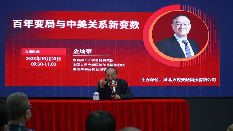 10月20日上午,“百年變局與中美關(guān)系新變數(shù)”專題講座在微特智慧谷會議廳成功舉行。此次活動由湖北火控安防科技有限公司主辦,微特智慧谷協(xié)辦,邀請教育部長江學(xué)者特聘教授、中國未來研究會理事長、中國人民大學(xué)國際關(guān)系學(xué)院金燦榮教授為主講嘉賓。本次講座吸引200余名聽眾到場,會場座無虛席,同時(shí)全網(wǎng)實(shí)時(shí)直播。