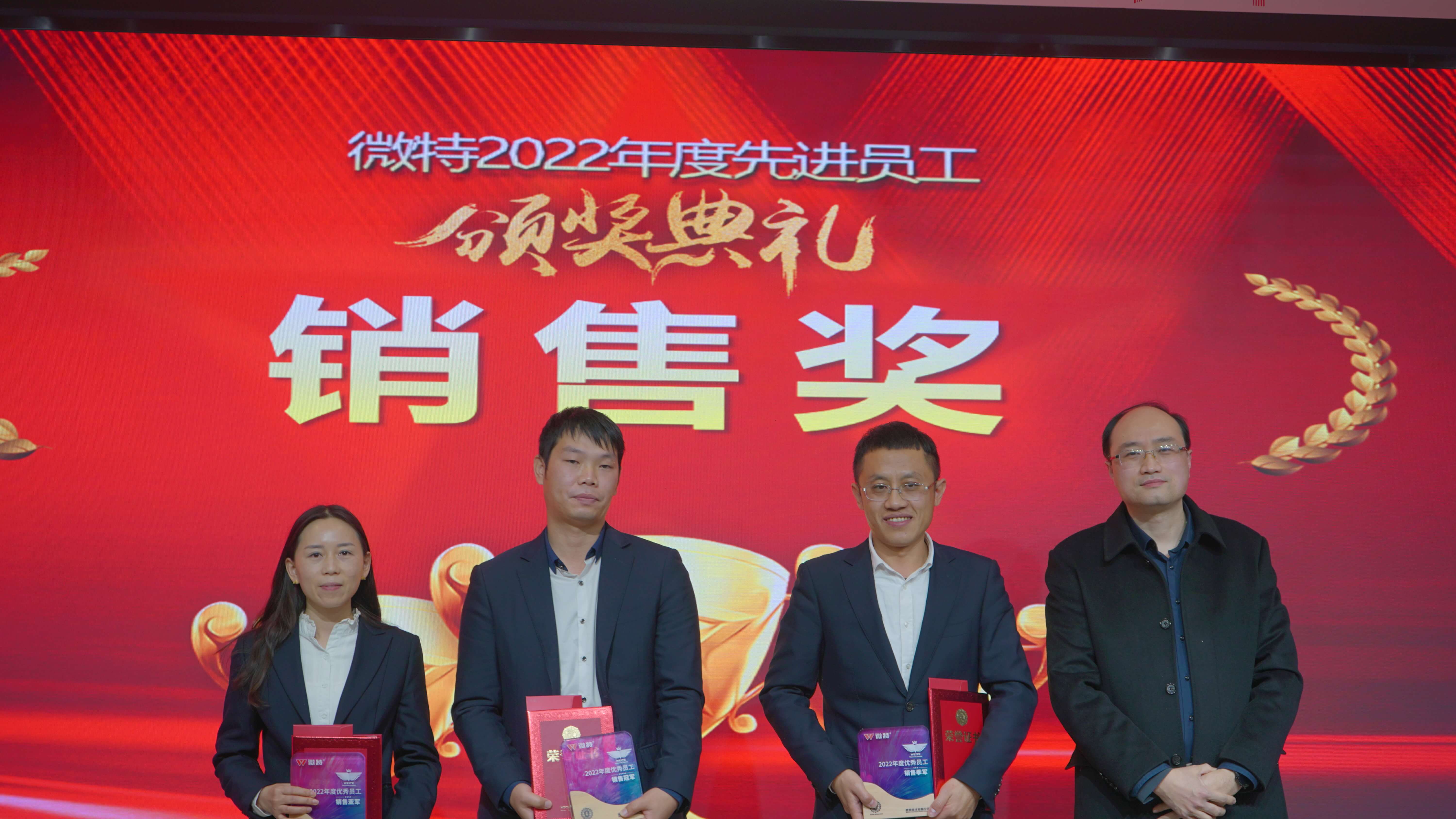 微特2022年度銷售獎,分別為銷售冠軍:水電事業(yè)部 蘇錦志; 銷售亞軍:水電事業(yè)部 翁瓊芳; 銷售季軍:水電事業(yè)部 劉立魁。