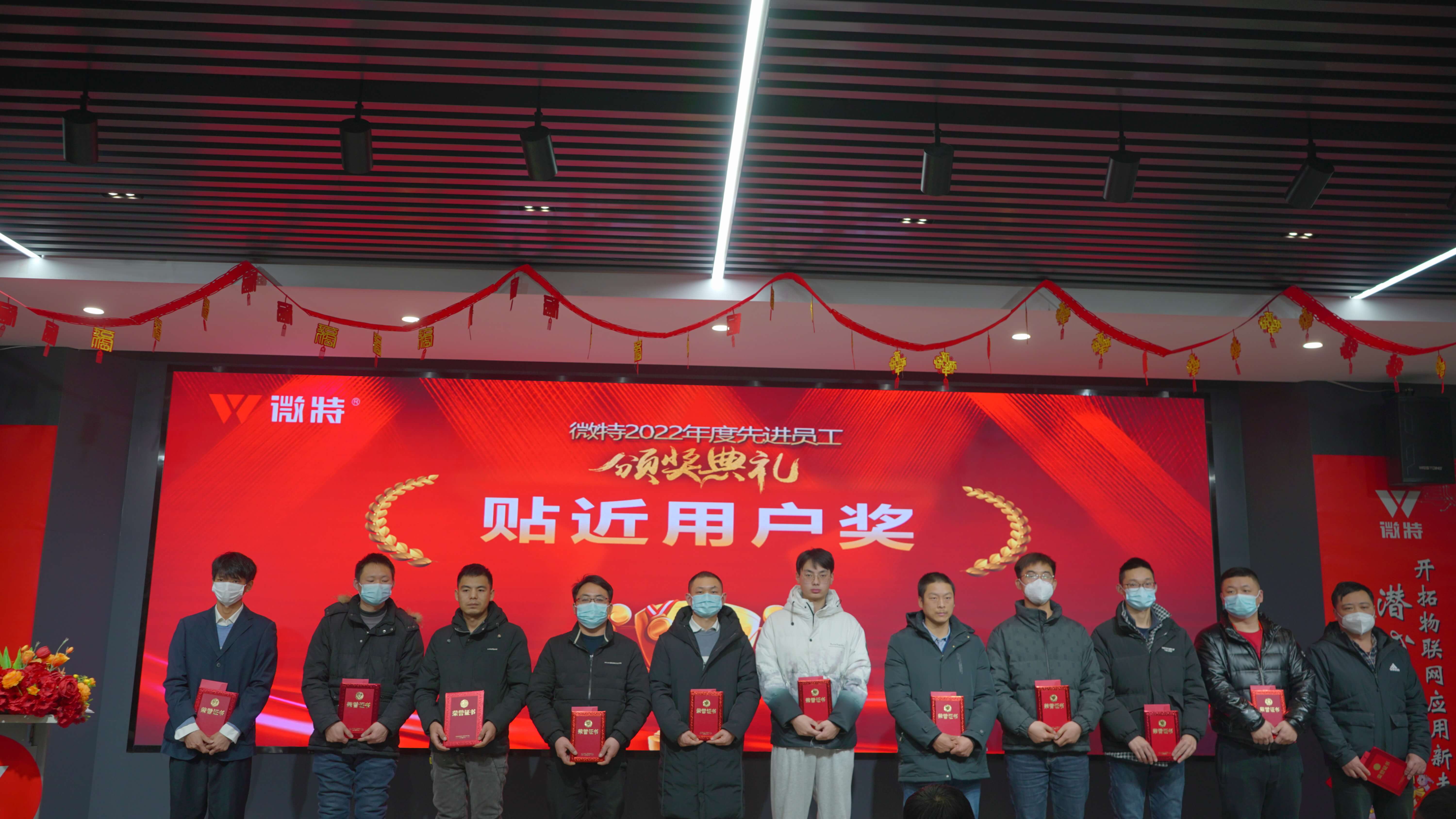 伴隨著最佳圖片和最美自拍的揭曉的落幕,迎來了本次年終慶典重頭戲-2022年度先進及優(yōu)秀頒獎。各部門先進優(yōu)秀員工及團隊陸續(xù)登臺領獎,他們在這一年中兢兢業(yè)業(yè)、全力奮斗,最終收獲優(yōu)異的工作成果,作出了優(yōu)秀的表率。 微特2022年度最佳新人,共計9人獲獎,他們分別是:張本橋、楊瓊、呂平、胡江波、韓忠、張念、向梓安、鄧靖、付華丹。 新產(chǎn)品事業(yè)部張念作為獲獎代表上臺發(fā)言:感謝公司對我的厚愛與信任;感謝領導對我的關愛;感謝同事們對我的認可;自從我和大家一起相聚在微特這個溫馨大家庭中的那天起,虛心學習、認真工作、更好的服務于客戶便是我的工作職責。所以,我始終努力在各方面完善自我、提高自我,為實現(xiàn)公司的經(jīng)營目標添磚加瓦。 微特2022年度最佳進步,共計8人獲獎,他們分別是:楊柳、蔣賓、向華、劉國慶、高文、楊彩云、鐘浩、戴彬彬。 微特索源蔣賓作為代表發(fā)言:非常感謝公司領導對我的工作認可與同事們的相互協(xié)助配合,能把運維工作這項平凡的工作做好就是不平凡,這個獎項是屬于整個運維團隊,我們從新手成長為工作的中堅力量,和團隊的共同努力分不開的。成績屬于過去,2023年我將繼續(xù)在重要產(chǎn)品運維工作中保持認真負責的態(tài)度,盡自己最大的努力為微特添磚加瓦。 微特2022年度資深工程師,共計6人獲獎,他們分別是:胡明、文貴州、周小爽、賀海波、周江林、陳鈺。 新產(chǎn)品事業(yè)部陳鈺作為代表發(fā)言:感謝公司給我這個寶貴的平臺,加入微特這個大家庭和大家一起成長一起努力。感謝部門同事對于我在工作遇到的問題的幫助。在今后的工作中我將化這份榮譽為動力,努力學習產(chǎn)品知識,不斷提高售后安裝技能水平,為公司創(chuàng)造更多價值回饋公司。 微特2022年度業(yè)務能手,共計11人獲獎,他們分別是:謝邦天、于金明、楊開翔、李蘭偉、楊雪梅、黃蘭紅、熊瑋、羅明、李沖、耿正濤、蘇甜甜。 品控部楊雪梅作為代表發(fā)言:去年有幸參加公司組織的到天津?qū)W習章義伍老師的流程管理培訓我學到很多,體系資質(zhì)方面,去年主要在于獲得新增體系和資質(zhì)證書,今年會更多的傾向于質(zhì)量管理體系的落地執(zhí)行。實際上,體系和流程這2種工具都是為我們服務的,讓我們的工作更簡潔、更高效、更標準統(tǒng)一。 船舶事業(yè)部李沖作為發(fā)言:回想當初剛來公司的時候自己對行業(yè)、對產(chǎn)品、流程都不太了解, 當時自己在想,自己能不能行,能不能做好 ,講到這里,也確實感謝我們領導平時的栽培和支持,也教給我了很多行業(yè)經(jīng)驗。記得之前領導說過:咱們做銷售就是多接觸客戶多出去走動多去敲領導的門,這句話一直記在心里, 自己也是抱著這樣的心態(tài),積累客戶,扎實基礎 ;在這個過程中發(fā)現(xiàn)自己也很喜歡這個行業(yè),喜歡這個銷售過程,特別是當一個項目開始跟客戶溝通交流,到最后能信任我們交給我們來做,整個過程也讓自己很有成就感,也很享受這個過程;時常提醒自己要越努力,才會越幸運。 微特2022年度貼近用戶獎,共計12人獲獎,他們分別是:周江林、胡進洲、覃富強、占俊、高文、張陳、魯彬彬、戴彬彬、朱文川、喬前、鄧靖、曹志勇。 施工事業(yè)部周江林作為代表發(fā)言:在此我要衷心的感謝大家,雖然我被評為2023年資深工程師,但我覺得還有好多同事在自己平凡的工作崗位上勤勤懇懇,默默無聞,任勞任怨的工作著,他們也同樣非常優(yōu)秀,2023公司在面對疫情的沖擊下,公司能實現(xiàn)增漲,離不開每一個微特人的努力。2023年,我們施工事業(yè)部主要業(yè)務之一是大型施工現(xiàn)場塔機防碰撞和可視化項目,面對大型施工現(xiàn)場站內(nèi)塔機數(shù)量多,密度大,交叉作業(yè)頻繁,施工時間緊張,客戶在不斷增加訂單,經(jīng)過大半年的深耕,大型施工現(xiàn)場塔機已離不開防碰撞和可視化,客戶的訂單數(shù)量,最能體現(xiàn)我們的努力。 微特2022年度研發(fā)工匠由研發(fā)中心孫工獲得。 孫工向大家分享了獲獎感言:這一年對我個人來說確實是非常不一樣的一年。這一年經(jīng)歷了過于樂觀、信心滿滿,經(jīng)歷了焦慮彷徨,最終收獲了知識感動、從容篤定。回首2022,感謝公司的培養(yǎng),感謝高總推送的《2022全國設備監(jiān)測診斷與維護學術會議》,認識了業(yè)界的大佬,知道了頂尖的研究方向;感謝在自己焦頭爛額時徐領導的開導,協(xié)調(diào)項目人員,也感謝項目組員小伙伴在項目進展緩慢時,能及時頂上。今天這獎項雖然發(fā)給了我,但是我們研發(fā)部每個小伙伴都非常優(yōu)秀,都能配得上“研發(fā)工匠”的稱號。 微特2022年度軟件工匠,由訂單保障中心林工獲得。 林工向大家分享了獲獎感言:很榮幸能夠獲獎,首先感謝微特這個平臺,感謝公司領導及同事們在工作中給予我的幫助和支持。訂單保障中心程序組的工作主要有2部分,訂單程序保供及現(xiàn)場售后的處理。程序組每個人分別保供不同的產(chǎn)品,我也由最初保供藍屏機,到后來的監(jiān)控的系統(tǒng)、WTL-A700的保供,逐漸對整個事業(yè)部訂單的保供。保供最大的樂趣在于,在某一瞬間突然有了靈感,解決了困擾已久的問題?;蚴怯纸佑|并理解了一種新的通訊方式,一種新的