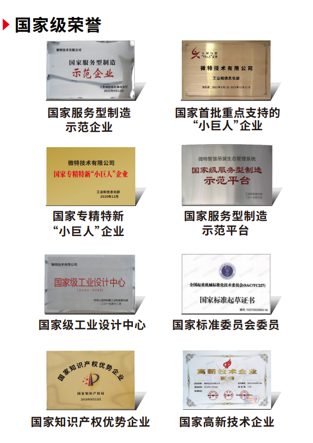 微特深耕起重機(jī)安全保護(hù)細(xì)分領(lǐng)域,補(bǔ)齊起重機(jī)維修保養(yǎng)報廢的行業(yè)技術(shù)標(biāo)準(zhǔn)和鏈條,逐漸成為起重機(jī)械安全保護(hù)領(lǐng)域?qū)<?,核心產(chǎn)品國內(nèi)市場占有率第一,2020年獲評國家第二批專精特新“小巨人”企業(yè),2021年成為國家首批重點支持的“小巨人”企業(yè)。微特用二十年多年時間,從一個弱小的新生命,成長為國內(nèi)大型起重機(jī)安全解決方案的首選品牌。