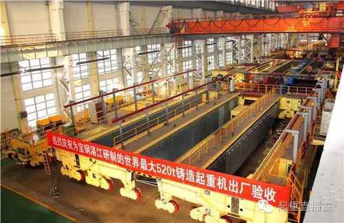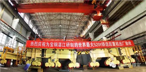 520噸鑄造起重機(jī)是寶鋼湛江煉鋼區(qū)鋼水接收跨關(guān)鍵設(shè)備,額定起重量520噸,是目前世界同類產(chǎn)品中起重量最大,輪壓最低的冶金鑄造起重機(jī)。其主要用途是在高溫、多粉塵的惡劣環(huán)境下,完成1600多攝氏度鋼水的吊運(yùn)工作,其工作繁忙程度為起重機(jī)最高級別。