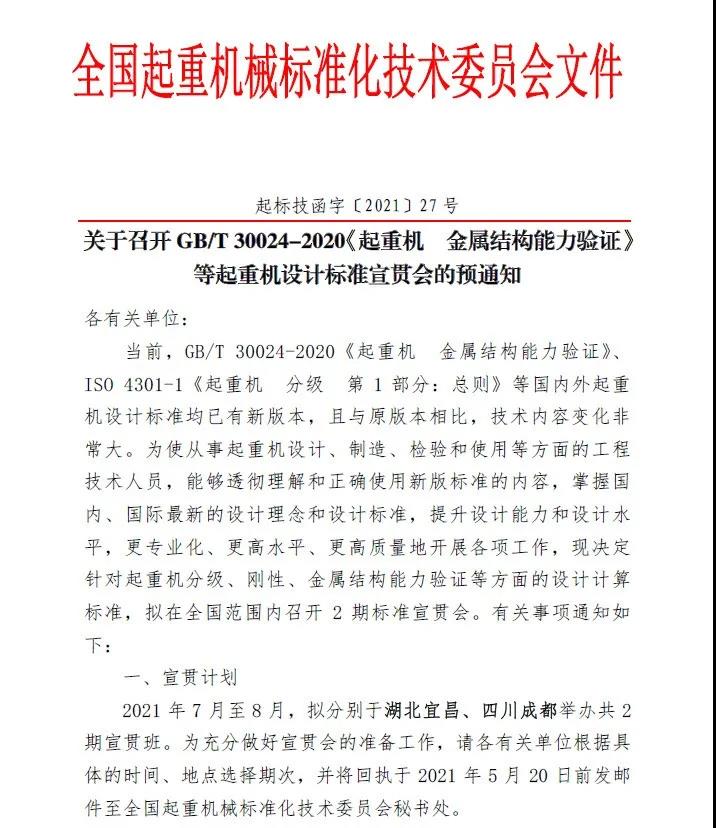 盛會(huì)云集的7月當(dāng)然不止江西的這一場(chǎng)。行業(yè)精英的集結(jié),知識(shí)的分享;思想的碰撞,靈感的激發(fā);資源的匯聚,業(yè)務(wù)的開(kāi)拓,合作的達(dá)成;老友的相聚,新友的相遇;一切盡在... 2021年7月,即將在湖北宜昌舉行,由微特技術(shù)有限公司承辦的關(guān)于GB/T 30024-2020《起重機(jī) 金屬結(jié)構(gòu)能力驗(yàn)證》等起重機(jī)設(shè)計(jì)標(biāo)準(zhǔn)宣貫會(huì)第一期,屆時(shí)起重機(jī)領(lǐng)域精英薈萃,大咖云集。
