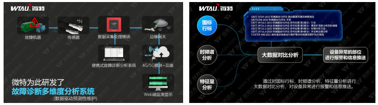 針對(duì)市場(chǎng)現(xiàn)狀,微特技術(shù)自主研發(fā)了故障診斷多維度分析系統(tǒng),通過對(duì)國標(biāo)行標(biāo)、時(shí)頻譜分析、特征量分析進(jìn)行大數(shù)據(jù)對(duì)比分析,對(duì)設(shè)備異常進(jìn)行報(bào)警和數(shù)據(jù)推送。