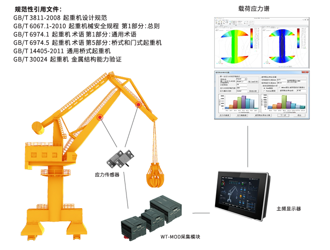 WT-SMS-MZ04門座式起重機使用環(huán)境惡劣,三班倒輪班作業(yè)工作時間長,調(diào)運載荷大、吊運物價值昂貴,且發(fā)生危 險時屬重大事故,所以對起重機的主臂架結(jié)構(gòu)疲勞在線安全監(jiān)測尤為重要。