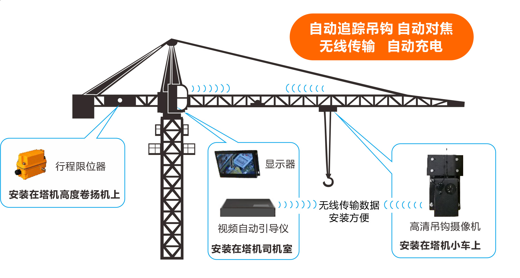 2、附加安裝,不改變塔吊原有線路和結(jié)構(gòu),不會產(chǎn)生任何負(fù)面效果。