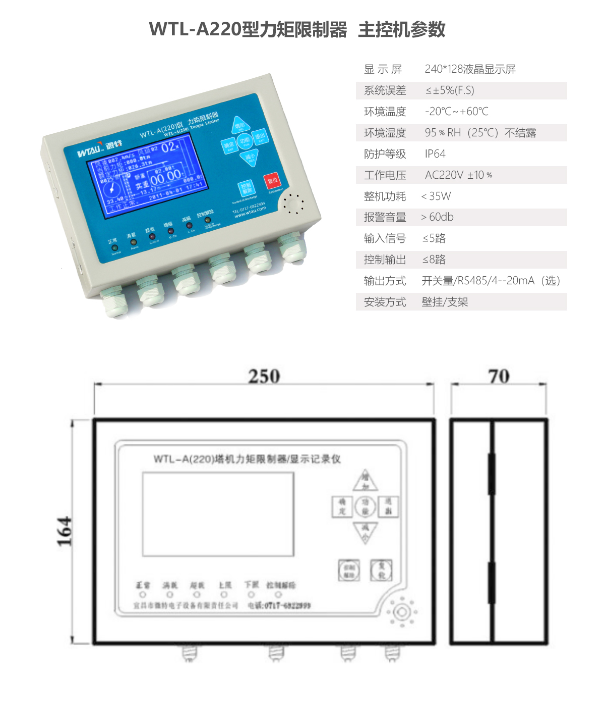 WTL-A220力矩限制器主機(jī)是塔機(jī)遠(yuǎn)程安全監(jiān)控系統(tǒng)專用控制主機(jī),該產(chǎn)品獲得湖北省重大科學(xué)技術(shù)成果獎(jiǎng)。 WTL-A220力矩限制器分為3限位、5限位、6限位與遠(yuǎn)程型、單機(jī)型配制。系統(tǒng)可實(shí)現(xiàn)對(duì)塔機(jī)吊重、小車(chē)幅度、吊鉤高度、回轉(zhuǎn)方位、實(shí)時(shí)風(fēng)速、GPS定位進(jìn)行監(jiān)控,同時(shí)具有可實(shí)現(xiàn)數(shù)據(jù)遠(yuǎn)程傳輸,遠(yuǎn)程監(jiān)控塔機(jī)工況等其它定制化功能。