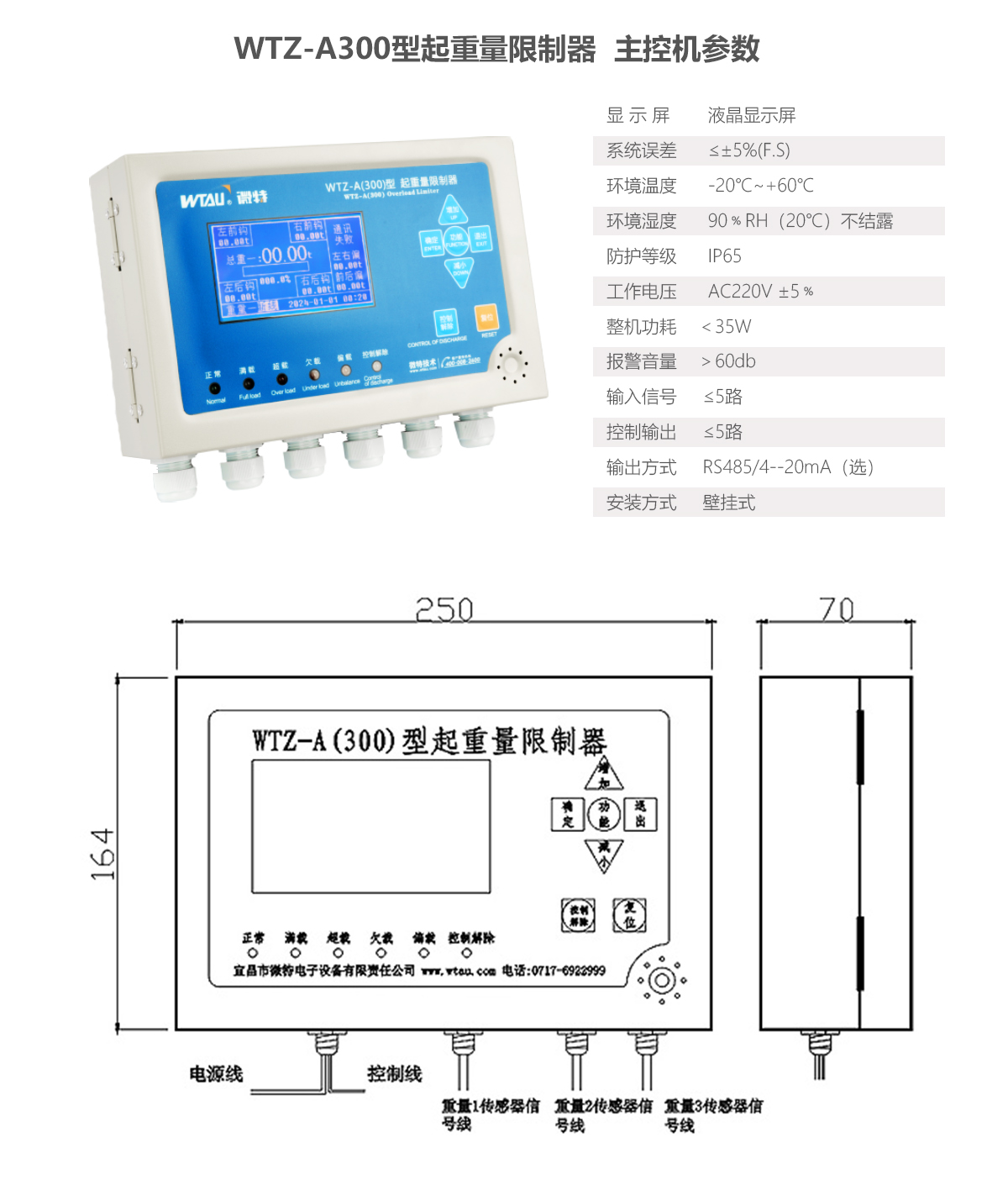 WTZ-A300起重量限制器(超載限制器)為微特研發(fā)生產的藍屏顯示起重量限制器,已在市場服役超過15年。該型號起重量限制器具有運行穩(wěn)定可靠、界面顯示簡潔、低功耗高精度、數(shù)據采集及輸出控制靈活可調等特點。
