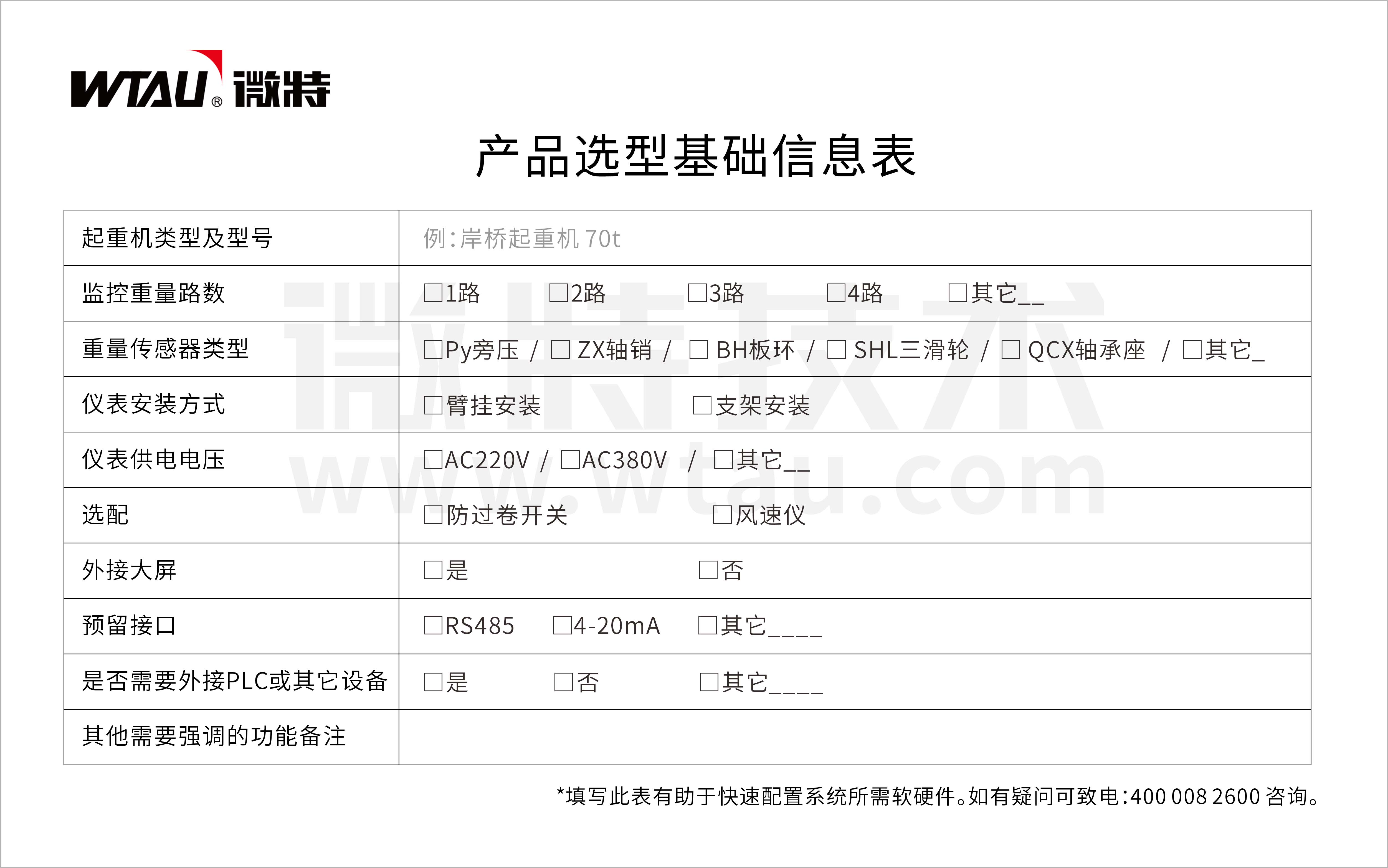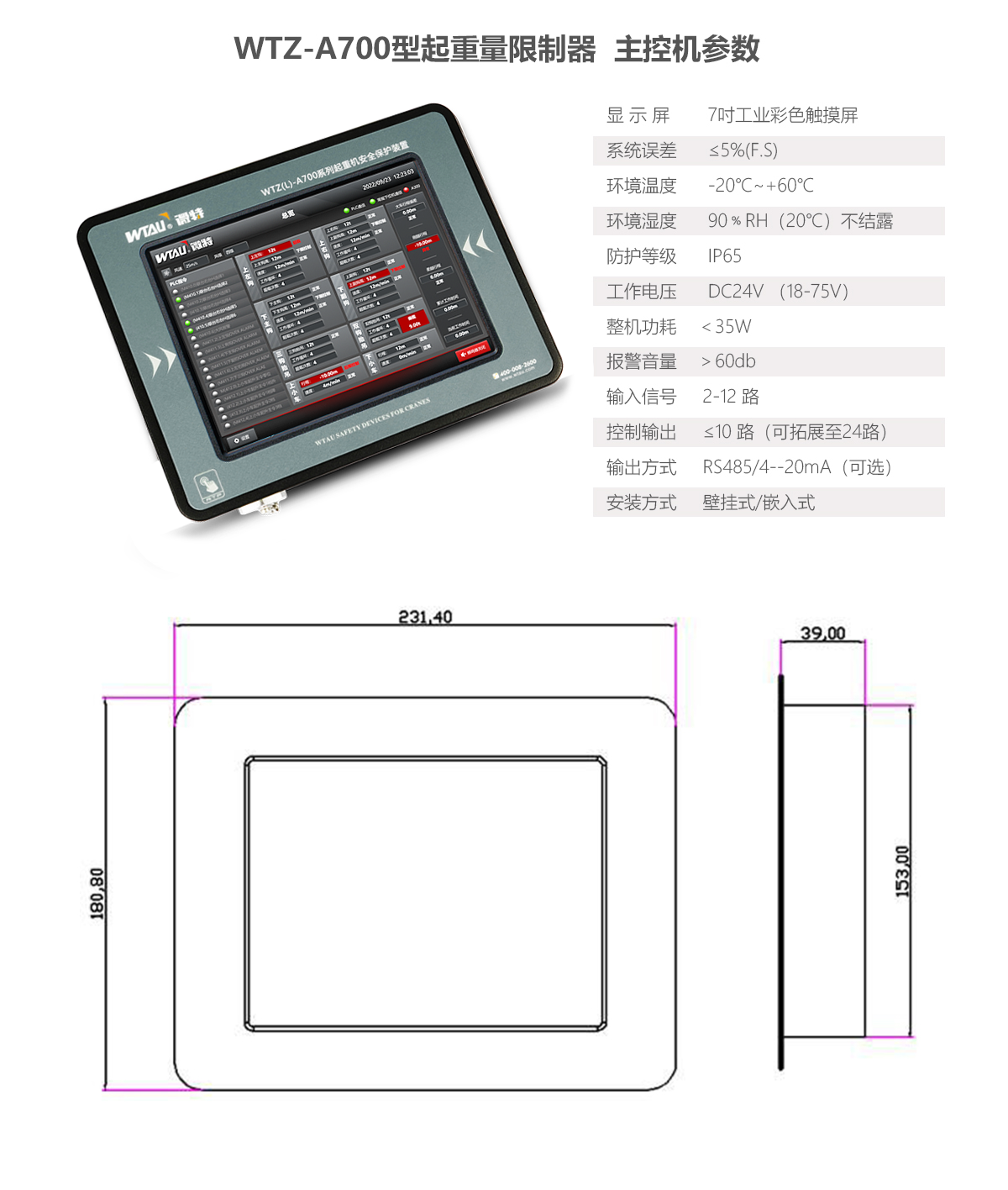 WTZ-A700起重量限制器裝備黑匣子功能,可升級為工作量統(tǒng)計功能,同時可監(jiān)測4~12路載荷信號。