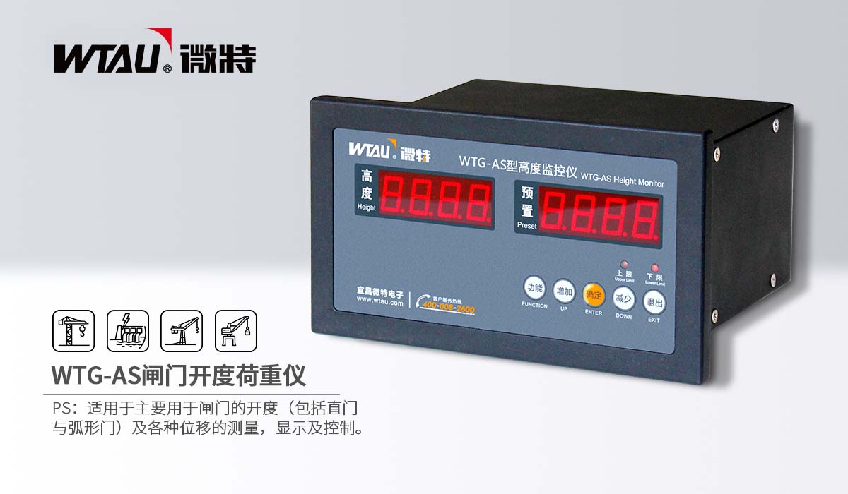 WTG-AS閘門開度(高度)儀是微特研發(fā)生產(chǎn)的一款專用于測量、顯示和控制啟閉機(jī)、門機(jī)、吊車等起重設(shè)備開度(高度)的自動化測控儀器。