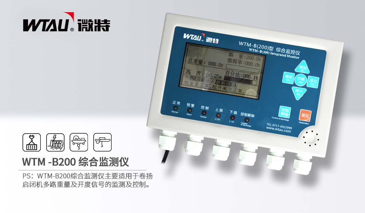 WTM-B200綜合監(jiān)測儀適用于卷揚啟閉機多路重量及開度信號的監(jiān)測及控制。