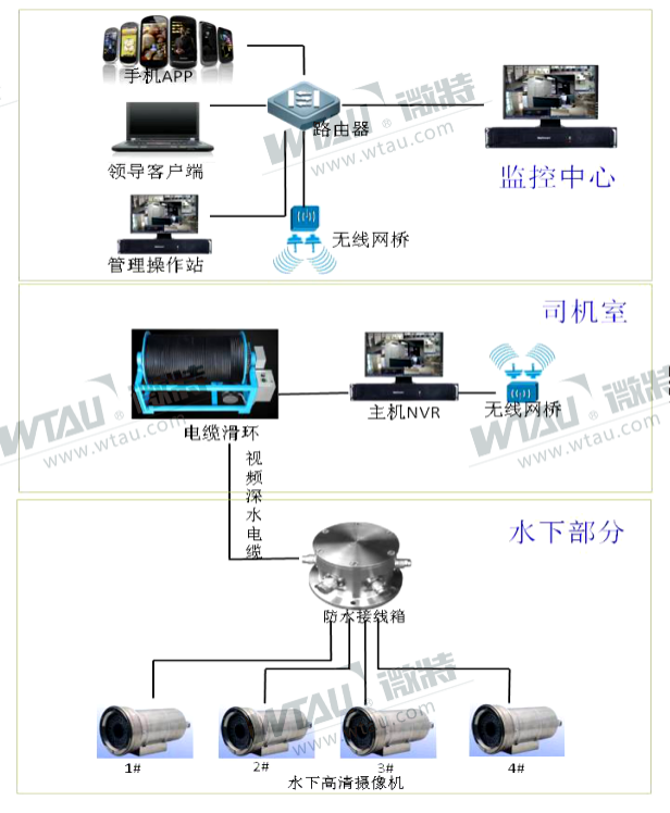 WTDC型網(wǎng)絡(luò)高清水下監(jiān)視系統(tǒng)拓?fù)鋱D