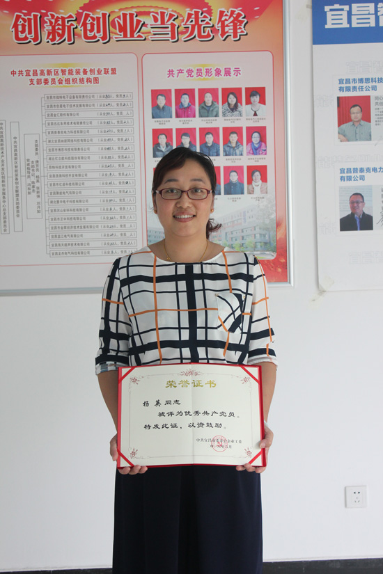 楊英同志擔(dān)任宜昌市微特電子設(shè)備有限責(zé)任公司倉(cāng)庫(kù)管理員,同時(shí)也是中共宜昌高新區(qū)智能裝備創(chuàng)業(yè)聯(lián)盟黨支部委員。平時(shí)工作兢兢業(yè)業(yè),成績(jī)顯著,同時(shí)積極發(fā)揮黨員先進(jìn)性作用,熱心幫助他人,帶動(dòng)同事共同成長(zhǎng)。在黨支部工作中,積極開(kāi)展“兩學(xué)一做”,并積極擔(dān)任入黨介紹人,發(fā)動(dòng)身邊的優(yōu)秀人才入黨。
