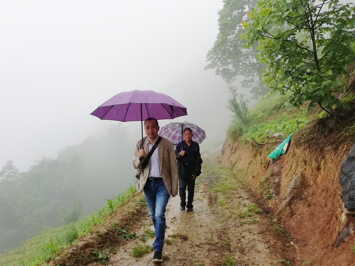 車在小邱小學班主任覃老師家的路旁停下,再往下開,怕是連越野車也抗不住了。大約還有3里路,我們同一起來迎的邱爺爺走著上去。