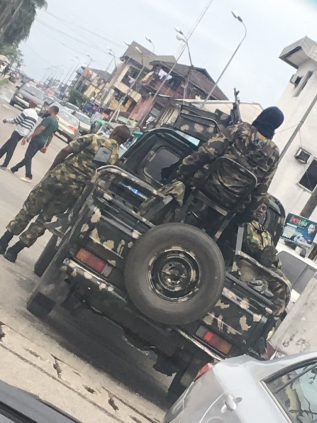 吃完了就得干活啦,不巧路上遇到武裝人員,有些怕怕