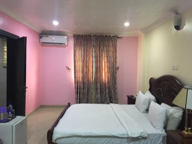 抵達酒店,據(jù)說這里相對安全一些。還碰到一間粉色的房間,運氣還不錯
