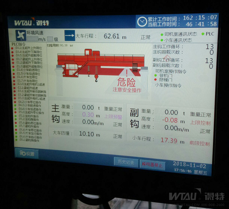 攀鋼生產(chǎn)設(shè)備眾多,其中鈦業(yè)煉廠起重機(jī)在生產(chǎn)中的角色不容小覷,該廠的數(shù)臺(tái)冶金橋式起重機(jī)為生產(chǎn)主力設(shè)備。微特參與此次冶金吊監(jiān)控系統(tǒng)的改造,配裝的WTSM-A型冶金吊監(jiān)控系統(tǒng)大大提升了該廠的安全生產(chǎn)效率,為安全生產(chǎn)提供有力保障。