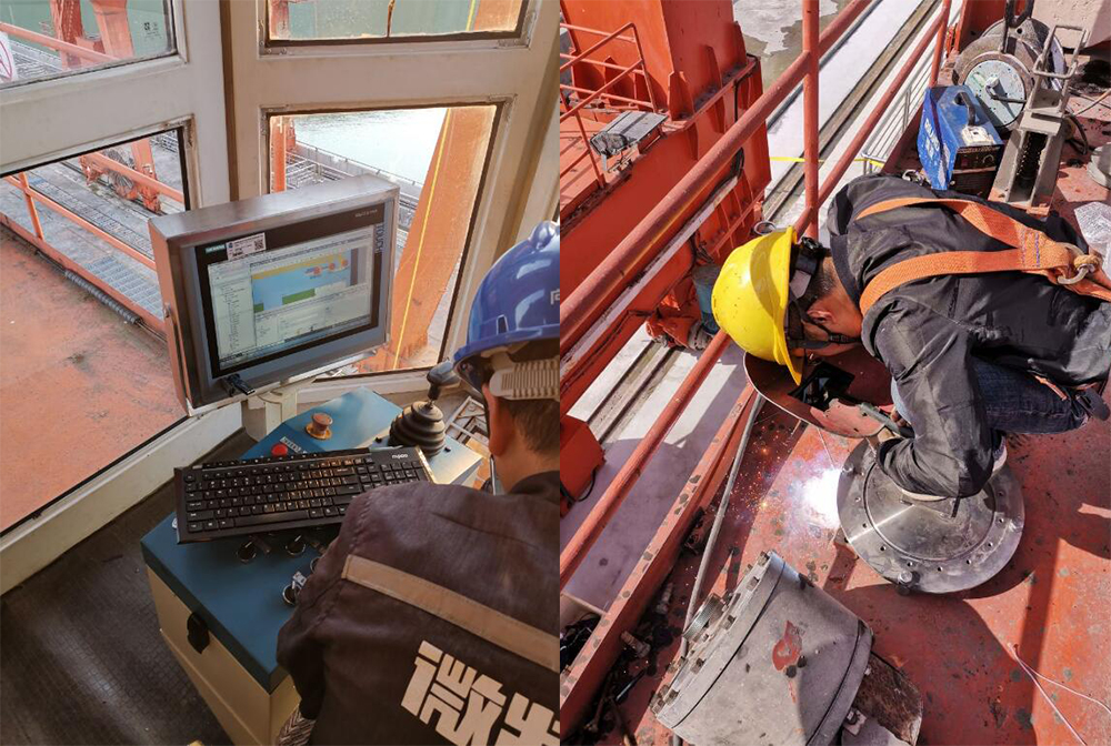 施工過(guò)程中,由于尾水門機(jī)抓梁不能落到地上,安裝過(guò)程中全程都是高空作業(yè),這無(wú)疑也加大了施工難度。而且,安裝期內(nèi)恰逢當(dāng)?shù)囟嘤晏鞖?,為了不延誤工期,售后工程師們時(shí)常要冒雨施工。雖然過(guò)程中困難較多,但均被一一克服解決,項(xiàng)目有序推進(jìn)。