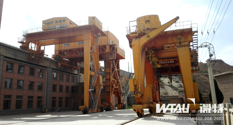 上圖為布置于青銅峽水電站壩頂上的多臺門式起重機