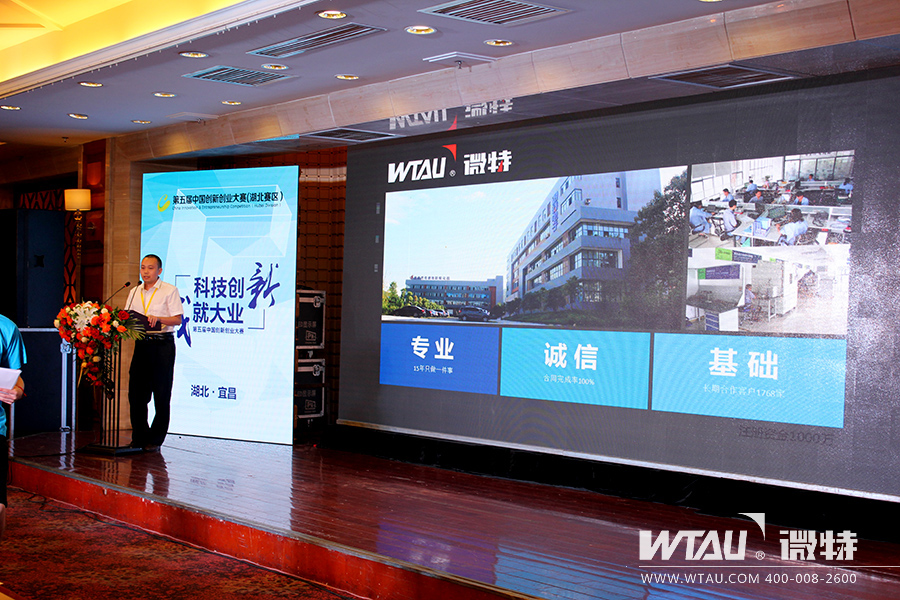 上圖為決賽現(xiàn)場,微特市場總監(jiān)李彬在臺上向評委與創(chuàng)業(yè)者介紹微特電子及“智慧吊裝生態(tài)系統(tǒng)”的創(chuàng)業(yè)項目