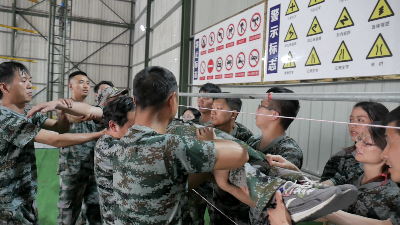 完成相關(guān)軍訓(xùn)科目的操練后,全體迅速轉(zhuǎn)場,進入高空抓杠和一線生機項目。想要完成,個人和團隊必須都有所突破。