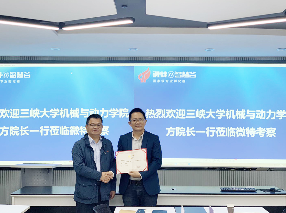 10月22日,三峽大學(xué)機(jī)械與動力學(xué)院院長方子帆一行蒞臨微特考察。座談會期間,方院長向微特公司董事長聶道靜頒發(fā)了三峽大學(xué)機(jī)械與動力學(xué)院碩士生導(dǎo)師的聘書。